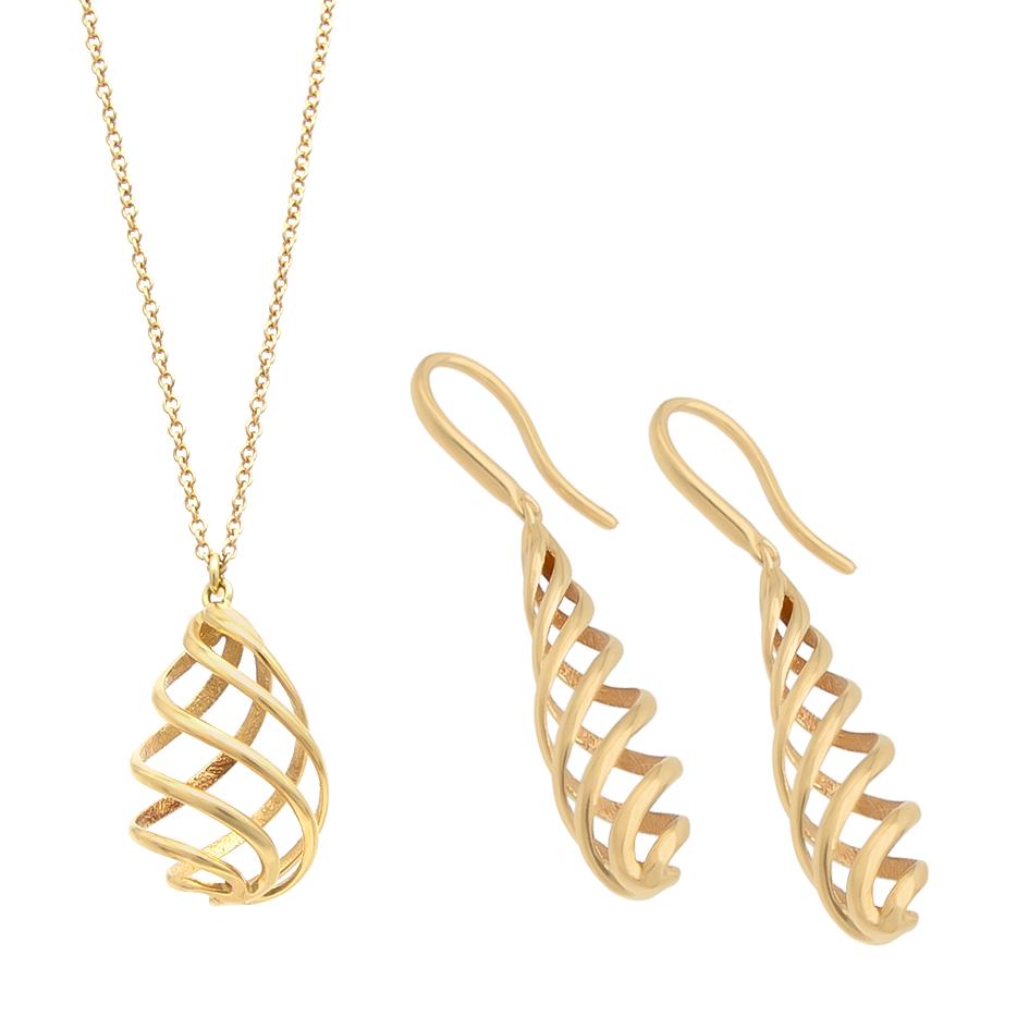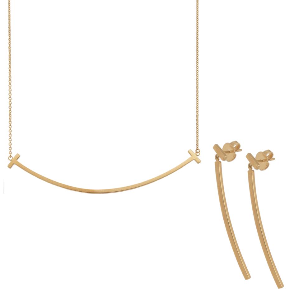 JueGo de GarGanTILLa y par de areTes LarGos FIrma “TIFFany & Co” *paLoma pICasso VeneZIa* confeccIonaDo en oro amarIllo, meDIDas caDena 40 cm, aretes (0.7 x 4.1 cm) grs. 7.0, calIDaDes y Pesos aProxImaDos.