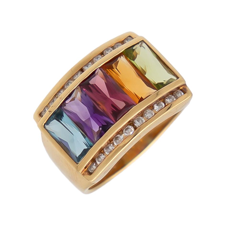 anILLo para dama confeccIonaDo en oro amarIllo 18k, cItrInos aProx. 0.70 ctw, brIllantes melee 0.16 ctw, meD. n° 6, grs. 15.1, (Detalle en gema) calIDaDes y Pesos aProxImaDos.