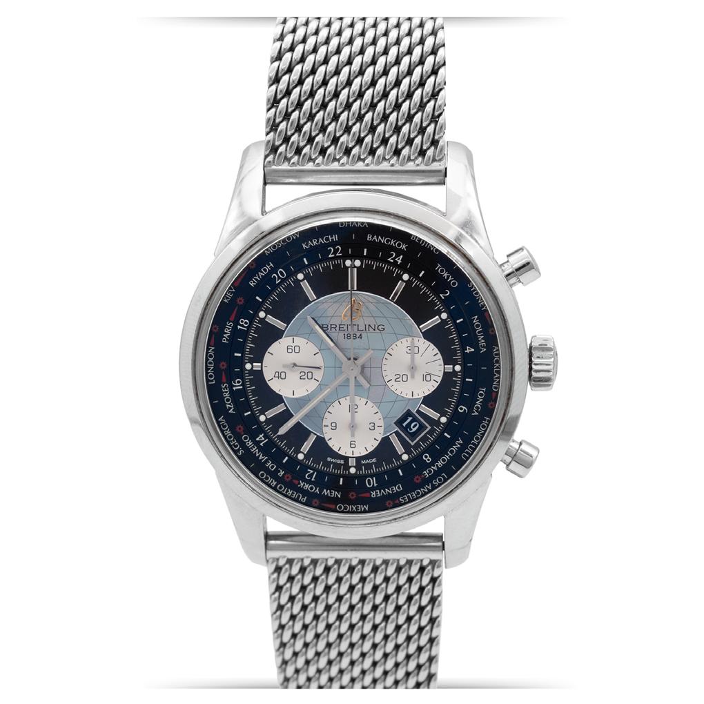 reLoJ para CabaLLero “breITLInG” *TransoCean CronoGraFo unITIme * reF: ab0510u4/ bb62/152a CIrCa 2012 caja 46 mm en acero, brazalete acero, carátula negra, InDIcaDores números con barras, mov. automátIco n° 4223831, comPlIcacIones: fecHaDor, cronógrafo, gmt, reserva De marcHa 70 Horas, serIe: 4223xxx, cal: b 05, joyas: 56, grs. 187.6, eDo. De conservacIón: satIsfactorIo $65,000