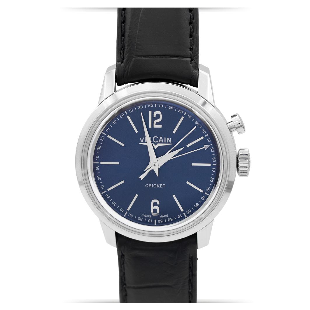 caja 43 mm en acero, brazalete PIel, carátula azul, InDIcaDores con barras y números arábIgos, mov. automátIco n° 4600058, comPlIcacIones: fecHaDor, cronógrafo, reserva De marcHa 44 Horas, serIe: 7255xxx, cal: 79320, joyas: 25, grs. 120.9, eDo. De conservacIón: satIsfactorIo