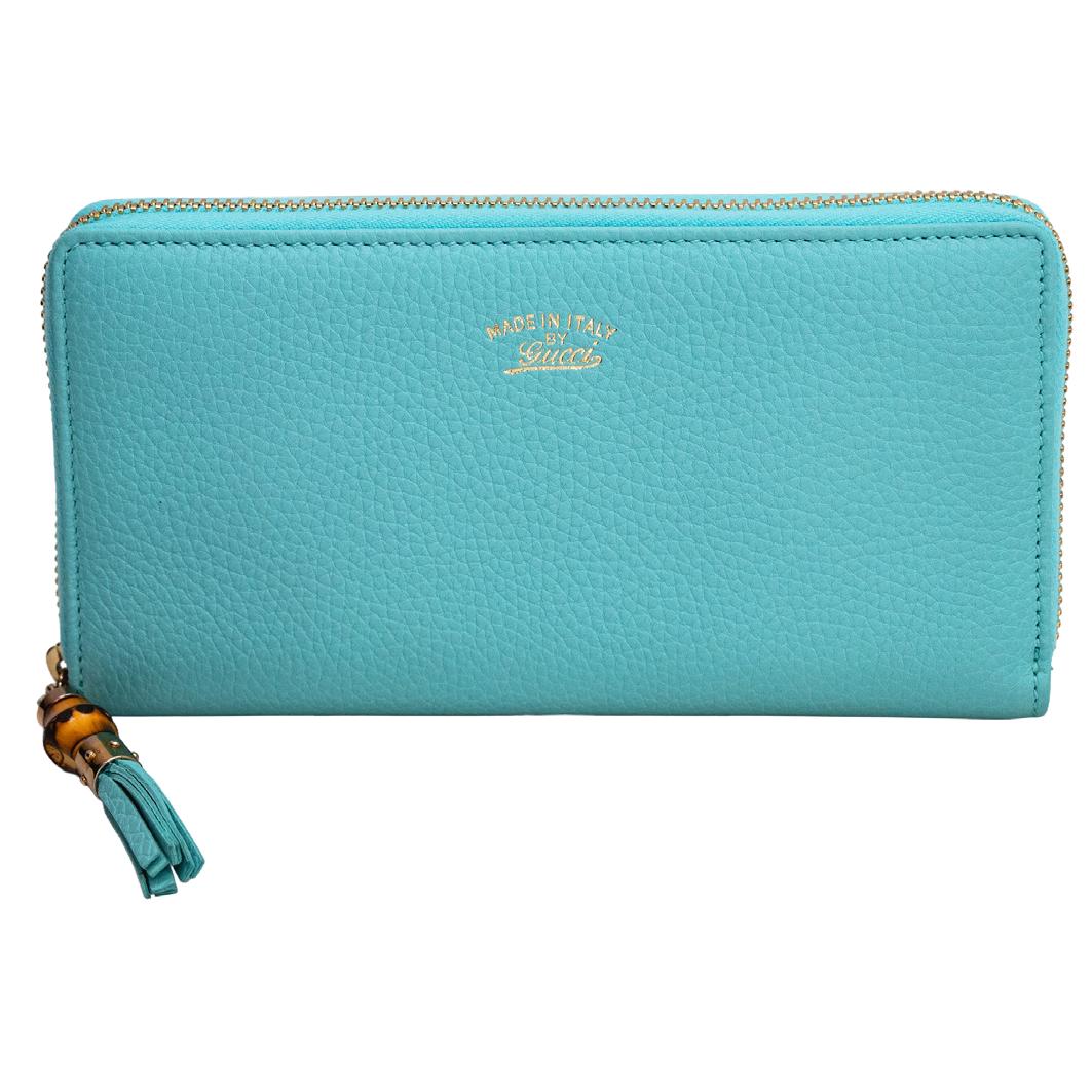exterIor en PIel granulaDa color azul aqua, zIPPer con bamboo y flecos, InterIor Para 12 tarjetas, moneDero con zIPPer y bIlletera, Herrajes DoraDos, con cubre Polvo y caja (estaDo De conservacIón ImPecable) valIDaDo Por exPertos curaDores