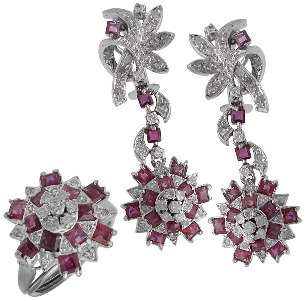 anILLo para dama FIrmado “TIFFany & Co.” *noVo* confeccIonaDo en PlatIno, con vIstas De oro, con rubí talla esmeralDa 0.68 cts. brIllantes talla trIllón 0.32 ctw (2x0.16) vs, H-I, meD. 6, gramos 4.5, calIDaD y Pesos aProxImaDos