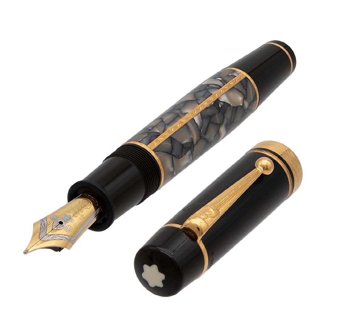boLÍGraFo “monTbLanC” *edICIón espeCIaL donaTIon pen JoHann sTrauss* resIna negra, Herrajes PlatInaDos, serIaDo, con garantía, caja musIcal, estucHe y caja