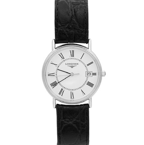 reloj Para caballero “longInes” *Présence* ref l4.720.4 caja 33 mm acero, Pulso PIel, carátula blanca, fecHaDor, mov cuarzo eDo satIsfactorIo en estucHe