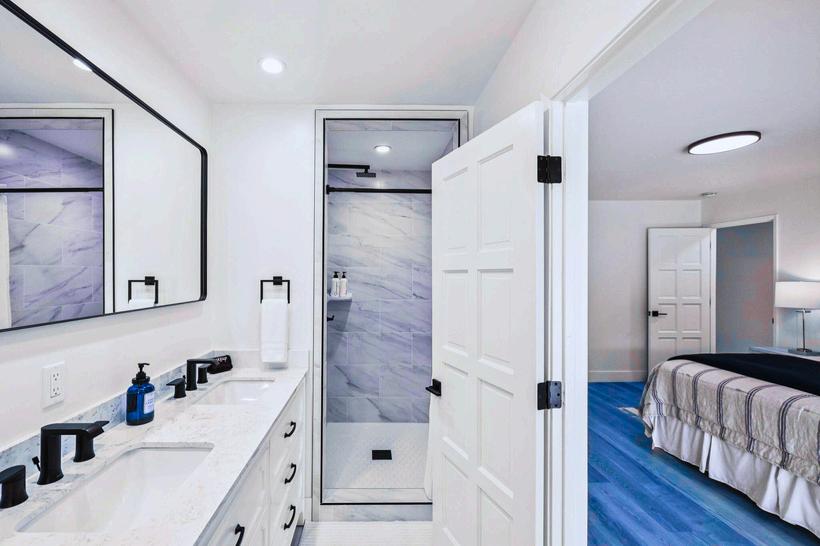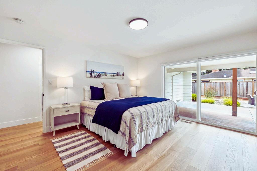 The primary suite is a retreat of its own, opening directly to the backyard patio
