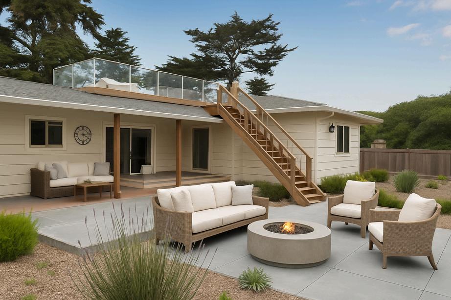 While not yet built, the plans envision a rooftop deck that maximizes the setting capturing views from the golf course to the ocean With room for outdoor seating and dining, the space would offer an elevated vantage point for enjoying the natural beauty of Pebble Beach