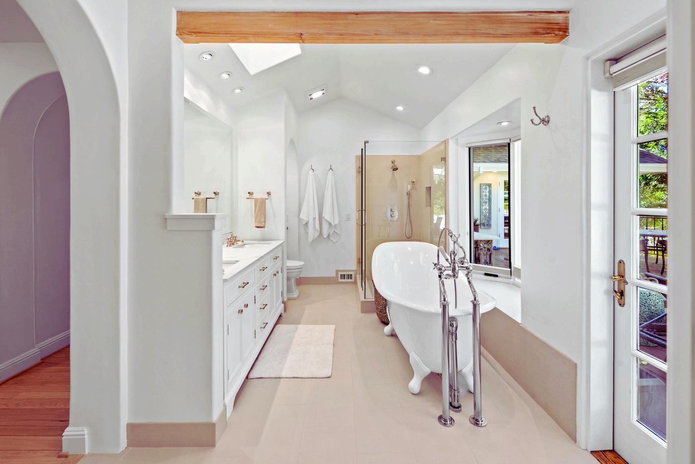 The primary suite feels like a private retreat a place to truly unwind. A marble fireplace warms the cozy sitting area, perfect for curling up with a good book. The walk-in closet is thoughtfully designed for effortless organization. A clawfoot tub and oversized shower create a spa-inspired escape in the primary bathroom. Dual vanities and soft lighting enhance the sense of indulgence. French doors open to the fresh morning air, making it the perfect spot to start your day.
