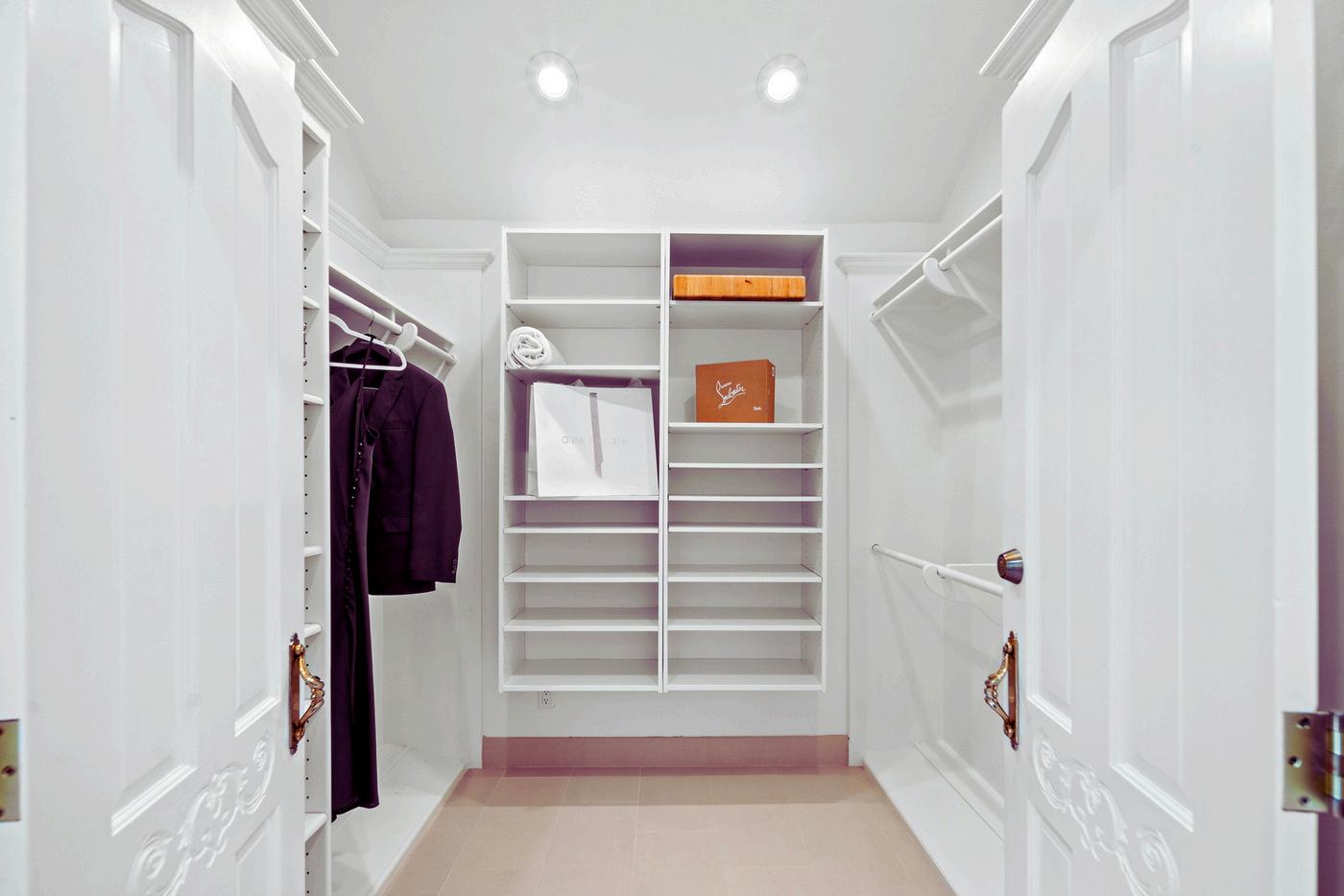 A third lower-level bedroom is currently outfitted with closet organizers and is a gracious dressing room.