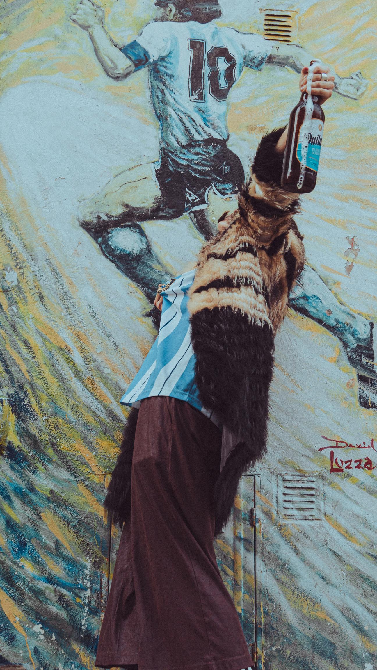 How daily interactions and traditional elements intertwine to form the essence of being Argentine in modernity. Predominant items in every Argentine such as “asado” (barbecue), Quilmes beer, leather coats and the Argentine national team shirt as part of our daily lives.