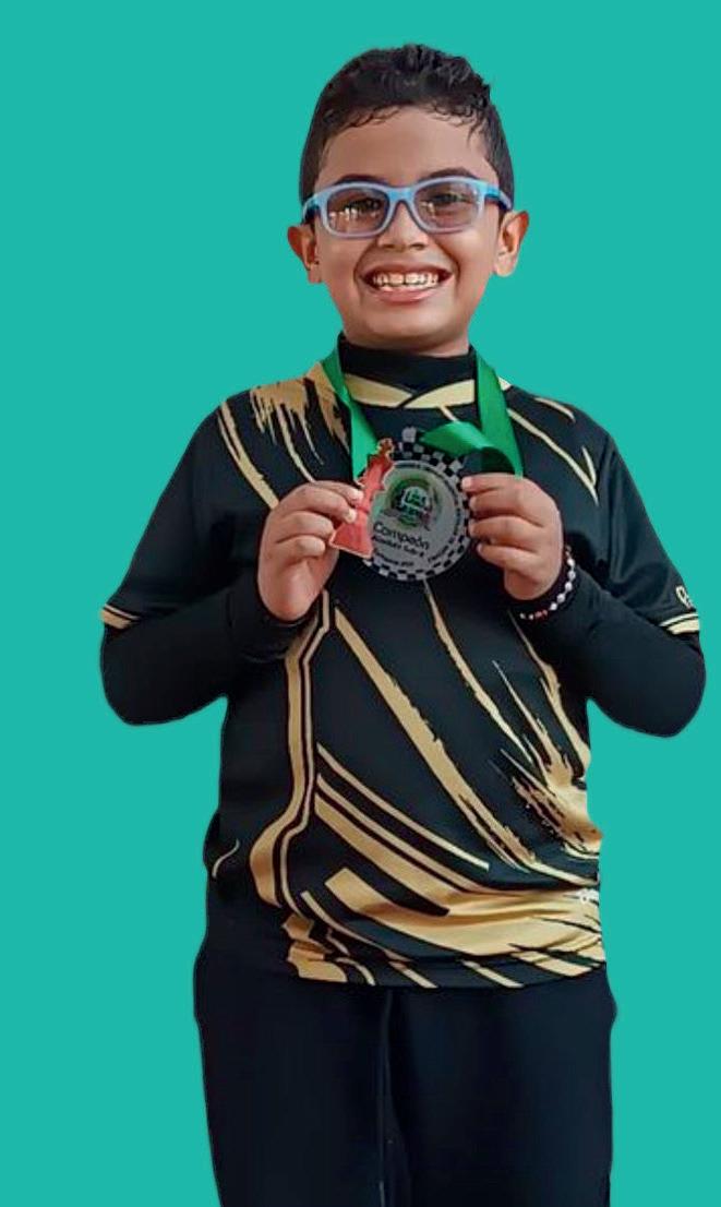 Felicitamos a Víctor Martínez Redondo, por obtener el título de campeón depar tamental absoluto en la categoría Sub-09 del Torneo Depar tamental Esco lar de Bolívar 2025, ¡Un gran logro que refleja su talento y disci plina en el ajedrez!