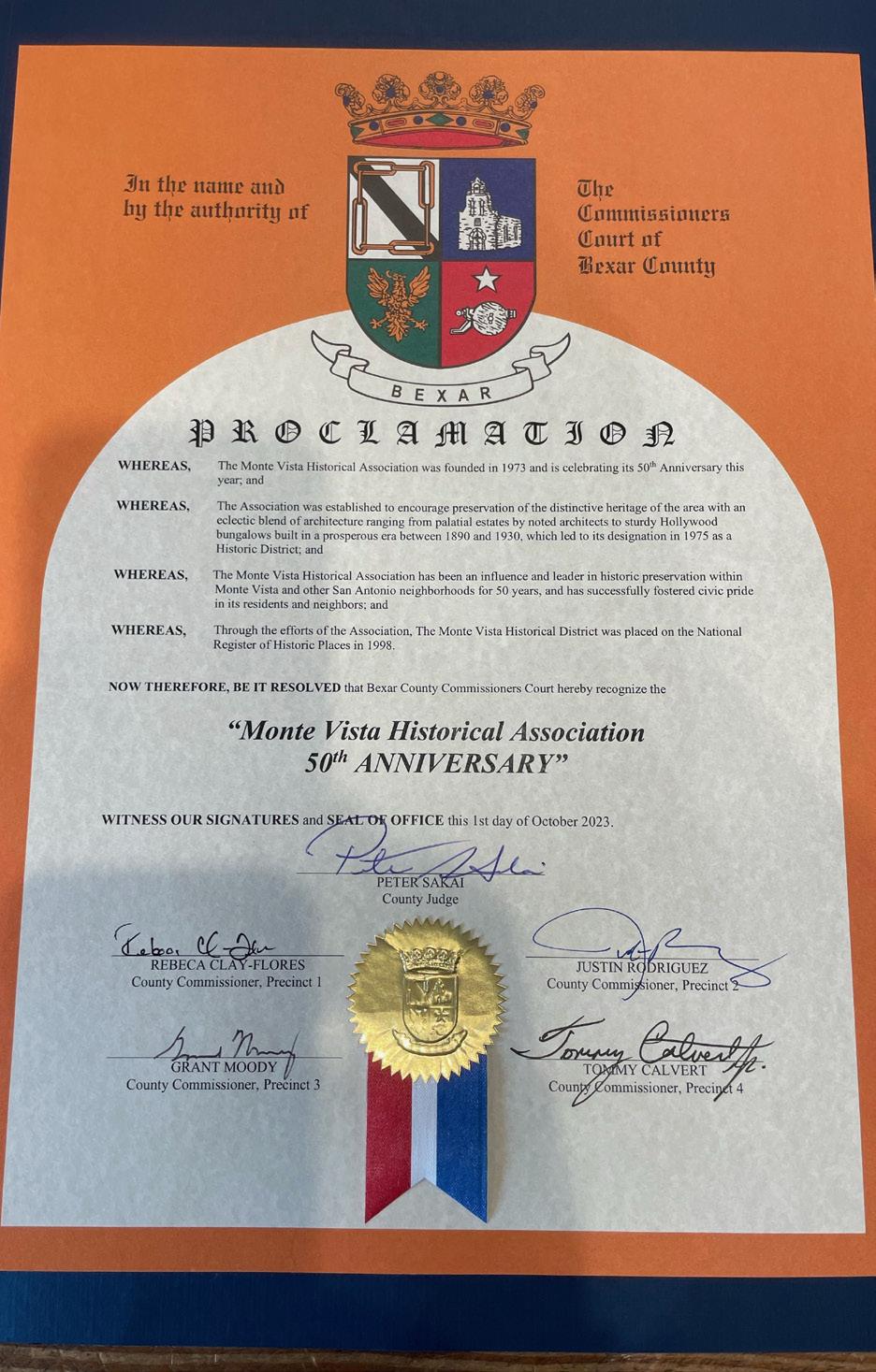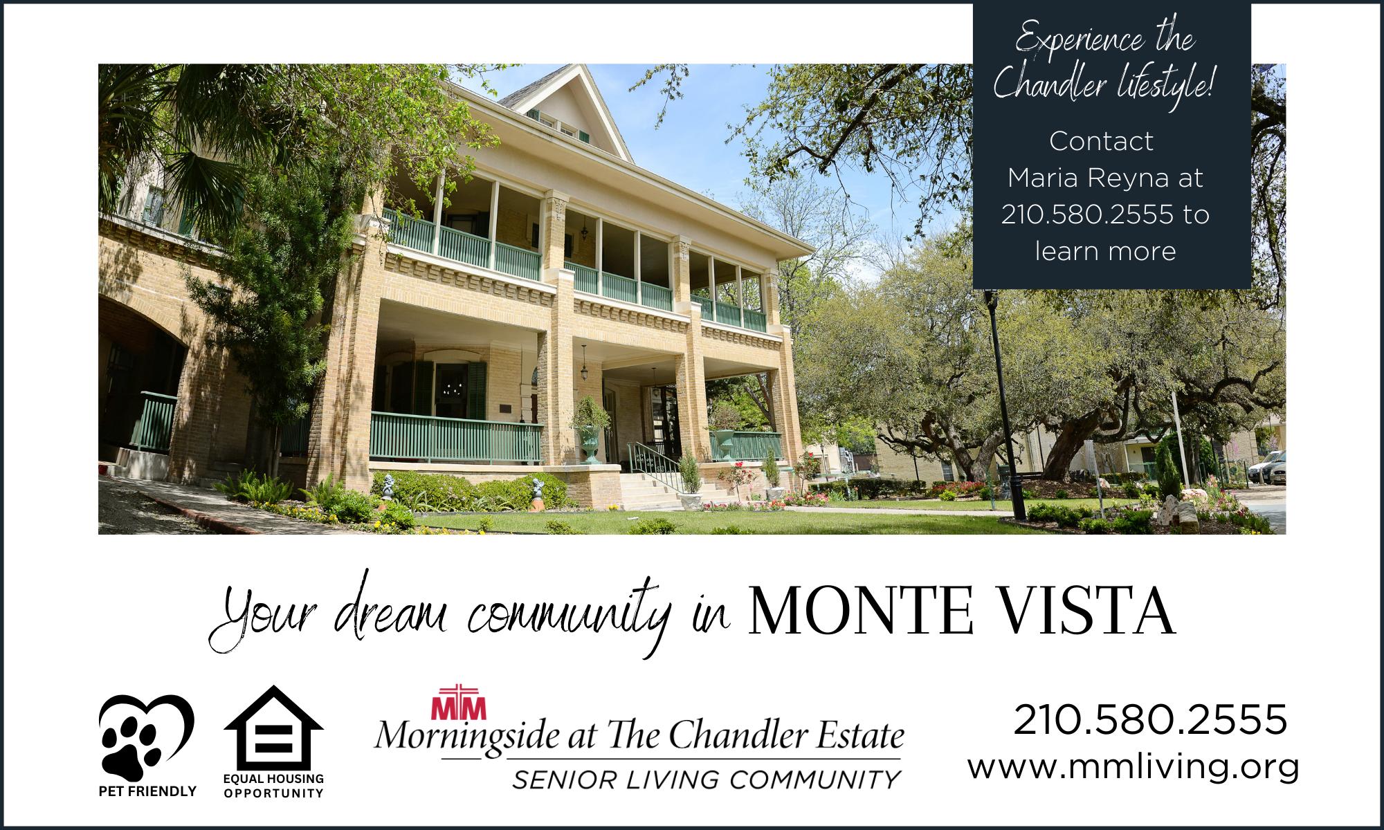 We ask you to consider a year-end contribution to our 4th Annual Year End Appeal for your Monte Vista Historical Association. Please consider a gift today on the website www. montevistasa.org/support or by mailing a check to PO Box 12386, San Antonio, TX 78212.