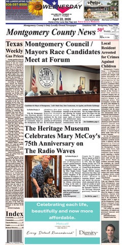 Your weekly source for community news! Locally owned and operated. Founded by Monte & Kim West of Montgomery. Welcome to The Montgomery County News! Montgomery County News is a weekly publication that covers the Northwest Montgomery County area. Our publication reaches 6200 readers through various drop off locations within our distribution area. We have a county wide reach through our subscription base.