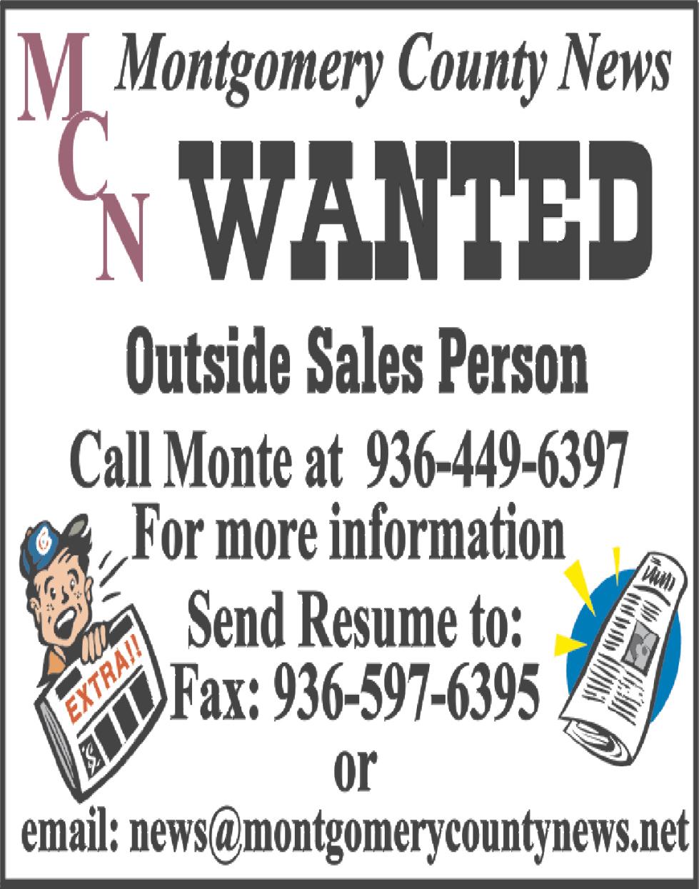 CLASSIFIED ADS $10 PER WEEK: CALL 936-449-6397 OR ONLINE www.montgomerycountynews.net