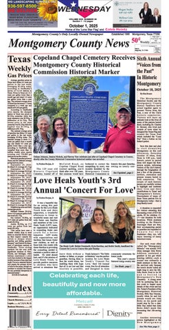 CONROE, Texas – Child Advocates of Montgomery County proudly introduces its Gaining Opportunities for Achievement and Learning (GOAL) Advocacy Pilot Program alongside the inauguration of its first class of Student Success Advocates. This Audrey Welsh singing Texas, Our Texas, at the CSO’s groundbreaking initiative, Rodeo concert this past Saturday in Conroe the first of its kind in Texas, t h e m e t o “ T h e L o n e Violins and Liz Royce’s will address the critical issues of school attendance Ranger,” with its fast, See CSO, page 2 high-paced gallop that had and academic participation within Montgomery ISD and Willis ISD. The GOAL Advocacy Program not only aims to reduce truancy rates but also to foster an environment where youth can thrive academically. By connecting families with community resources a n d p r o v i d i n g personalized support, the program endeavors to keep children on track for a successful future. Student Success Advocates, comprised of highly trained community volunteers, are assigned to support and advocate for children facing challenges in maintaining regular school attendance. “The need for intervention is clear,” said Montgomery County Justice of the Peace for Precinct 1, The Honorable Wayne L. Mack. “And I believe Student Success Advocates can play a critical role to empower Pat Spackey, great, great, great granddaughter of Dr. Charles B, Stewart of our community’s young Montgomery, Texas learners to overcome Charles B. Stewart, Pat is State Chair of TXDAR obstacles and achieve their Flag”. As the great, great, honored to share her family full potential.” great granddaughter of Dr. history in her position as See Texas Flag, page 2