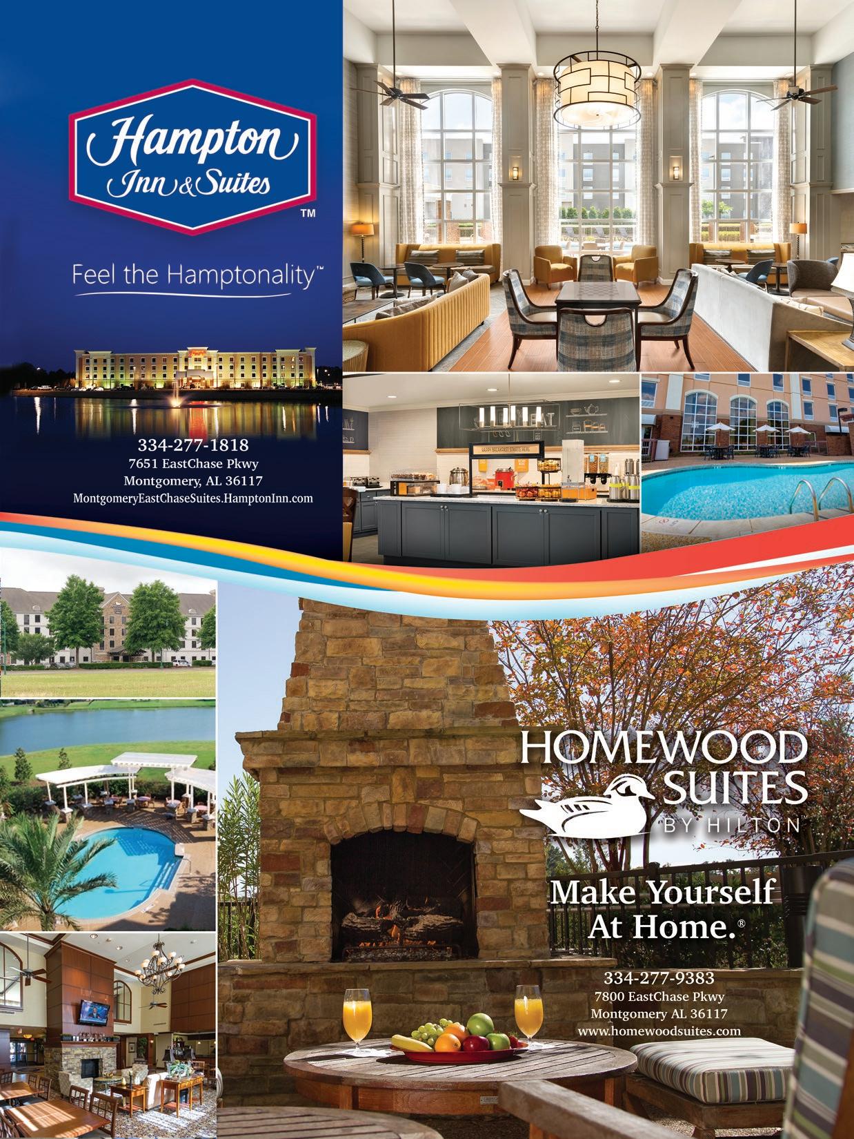HILTON MONTGOMERY DOWNTOWN 120 MADISON AVE, MONTGOMERY | (334) 245-2320 HAMPTON INN & SUITES MONTGOMERY DOWNTOWN 100 COMMERCE ST, MONTGOMERY | (334) 265-1010 FAIRFIELD INN & SUITES MONTGOMERY AIRPORT SOUTH 7560 MOBILE HWY, MONTGOMERY | (334) 281-6882 HAMPTON INN MONTGOMERY SOUTH AIRPORT 60 WASDEN RD, HOPE HULL | (334) 280-9592 SPRINGHILL SUITES BY MARRIOTT MONTGOMERY DOWNTOWN 152 COOSA ST, MONTGOMERY | (334) 245-2088