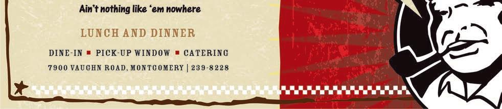 Experience Montgomery is the of cial Visitor Guide for Montgomery and the River Region. It is published by exploreMedia for Experience Montgomery, a division of the Montgomery Chamber of Commerce. 600 S Court Street, Montgomery, AL 36104 800-240-9452