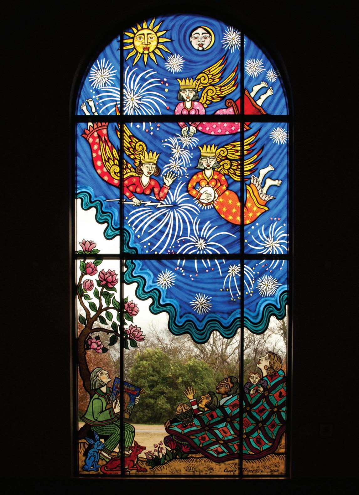 Opposite: Cappy Thompson (American, born 1952), Stars Falling on Alabama: We Are Enraptured by the Celestial Fireworks of the Muses, 2005, vitreous enamel on glass, Montgomery Museum of Fine Arts Association Commission, 2006.2