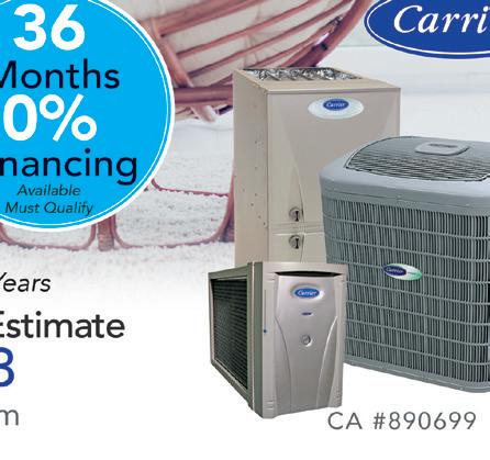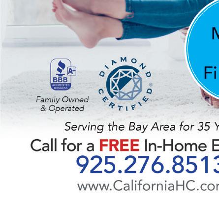 YOUR HVAC SPECIALISTS! WE OFFER: • Air Purification/Filtration • Duct Inspection/Repairs • Furnace Tune-Ups • Air Conditioning Tune-Up (Weather Permitting) • Wi-Fi Thermostats • Mini Split Specialists 428 N. BUCHANAN CIRCLE #8 • PACHECO, CA 925-281-3321 connollyhvac.com Mon-Fri 8am-4:30pm A/C Tune-Ups Any Repair First Time Clients up to $1,000 20% OFF With this trending now ad. Cannot be combined with any other offers. Expires 8/31/23. With this trending now ad. Cannot be combined with any other offers. Expires 8/31/23. 12 Months 0% Interest Same As Cash O.A.C. Celebrating 50 Years! $89 Reg. $149