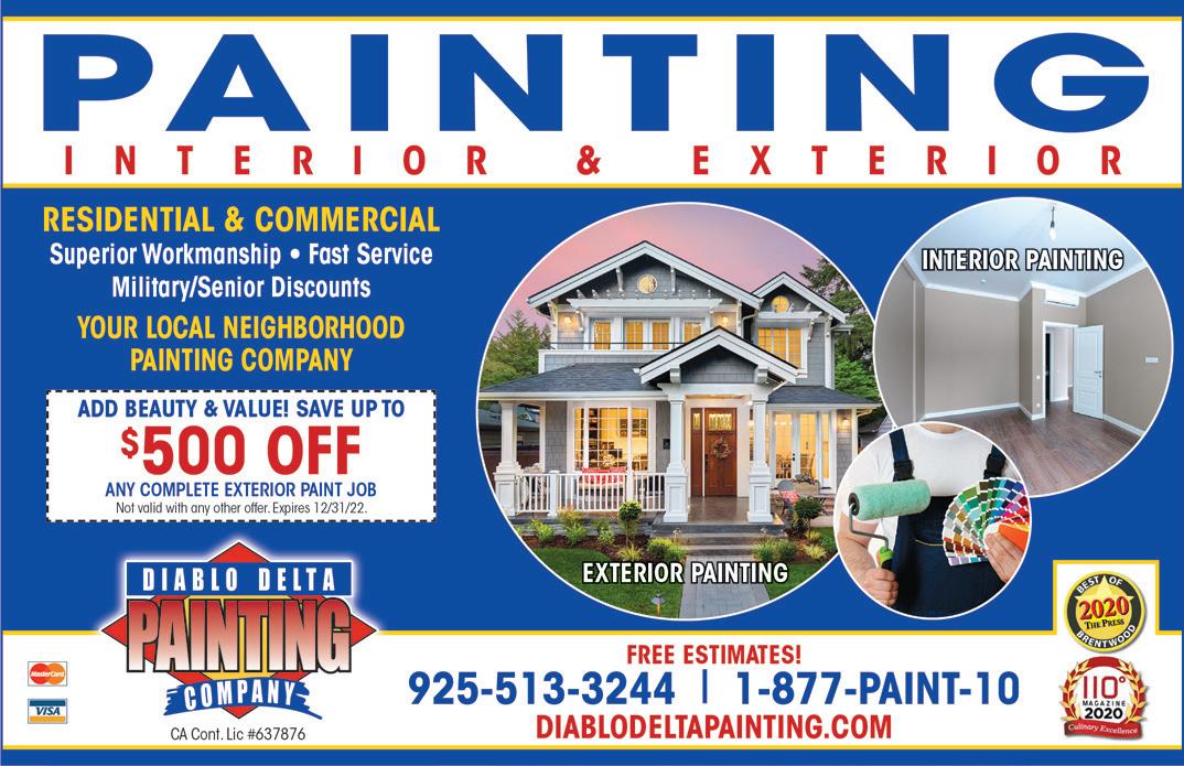 The Monthly Grapevine ™ Delta NOVEMBER 2022 21 TO ADVERTISE CALL 925-634-0880 • Landscape Plans • Dry Creekbeds • Patios • Clean-up • Sod & Synthetic Lawns • Sprinkler • Tree Pruning • Fences • Drip System • Pavers • Retaining Walls • Concrete Demo LICENSE #784035 • BONDED & INSURED FREE Estimates! 925-240-6311 • 1555 Eden Plains Rd, Brentwood • Palm Trees • Fruit Trees • Shade Trees • Roses • Citrus • Succulents FULL SERVICE LANDSCAPING & NURSERY NURSERY BEARSCAPES WE SELL SOD! JUST $0.69 SQ FT. WE SELL FIREWOOD! 40% OFF ALL STATUES & CERAMIC POTS YES! WE’RE OPEN EVERYDAY! YES! WE’RE OPEN EVERYDAY! Hours: Monday - Sunday 9:00am-4:30pm With coupon. Only to be used on non-discounted merchandise. 10% OFF Beautify YOUR YARD HAPPY LANDSCAPE & CONSTRUCTION • 925-752-0375 Lic #982294 • Concrete (All Types) • Walkways • Patios • Driveways • Retaining Walls • Brick Work• Fencing • Patio Covers • Synthetic Turf • Tree Service • Rock Garden • Decks • Pavers • Flagstone • Drainage Systems • Sprinkler & Drip System (Inst. & Repair) • Yard Clean-up • Hauling • And More! Quality Work at Low Prices 15% OFF Any Service with this ad. Must present ad. Expires 11/30/22. FREE ESTIMATES Interior • Exterior • Repaints Free Estimates Jared Cuevas BayValleyPaintingInc@gmail.com CA Lic. #1016730 $40 OFF Not valid with any other offer. Limited time offer. 925-804-1910 • Free Estimates 29 Years Experience & Over 4000 Homes We Also Offer Cabinet Refacing Cabinet Restoration Services Cabinet Restoration Services Beautiful Cabinets Without Buying New