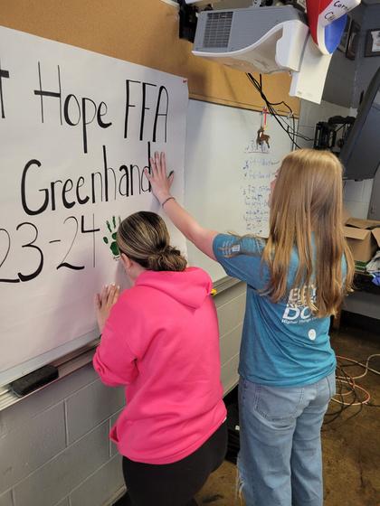 Treasurer, Lexi, and Reporter, Addison came up with a fun FFA trivia to play with Greenhands after they finished their pancakes