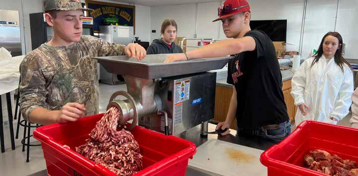 “Our classes make whole hog sausage and bacon to use for community breakfasts for FFA Week and Veterans Day,” French says. “We have even worked with community partners to make deer burger and package it for community members. We are not an inspected facility, so this is for donation only.”