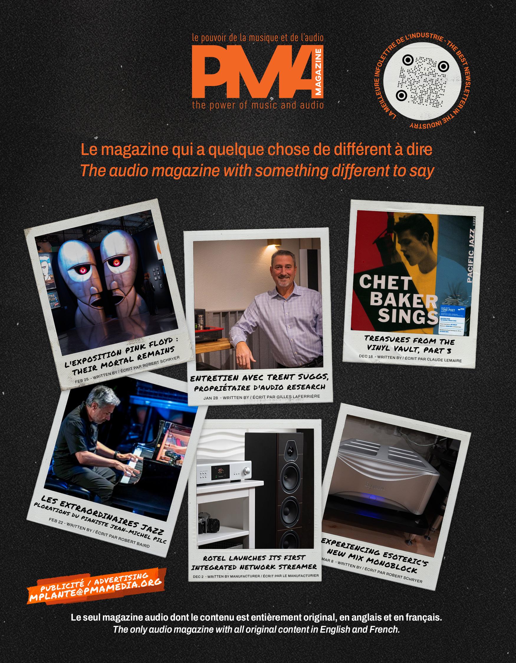 “Nos produits sont dispendieux, mais ils ont une valeur incomparable. Si on regarde notre façon de faire les choses, on se rend compte que la valeur ajoutée est un facteur clé de notre succès. Si on regarde l’histoire d’Audio Research au cours des dix dernières années, on se rend compte que la compagnie s’est éloignée des produits plus abordables. Le point d’entrée a été d’environ 20 000 $US au cours des 7 ou 8 dernières années. Pour des gens financièrement à l’aise, ça va, mais notre but est d’intéresser une clientèle plus jeune. Nous avons remarqué qu’il y a un intérêt grandissant de la nouvelle génération. Le vinyle et la diffusion numérique de qualité sont deux raisons qui font que les jeunes se détournent lentement des horribles écouteurs trendy.” La deuxième partie arrive bientôt.