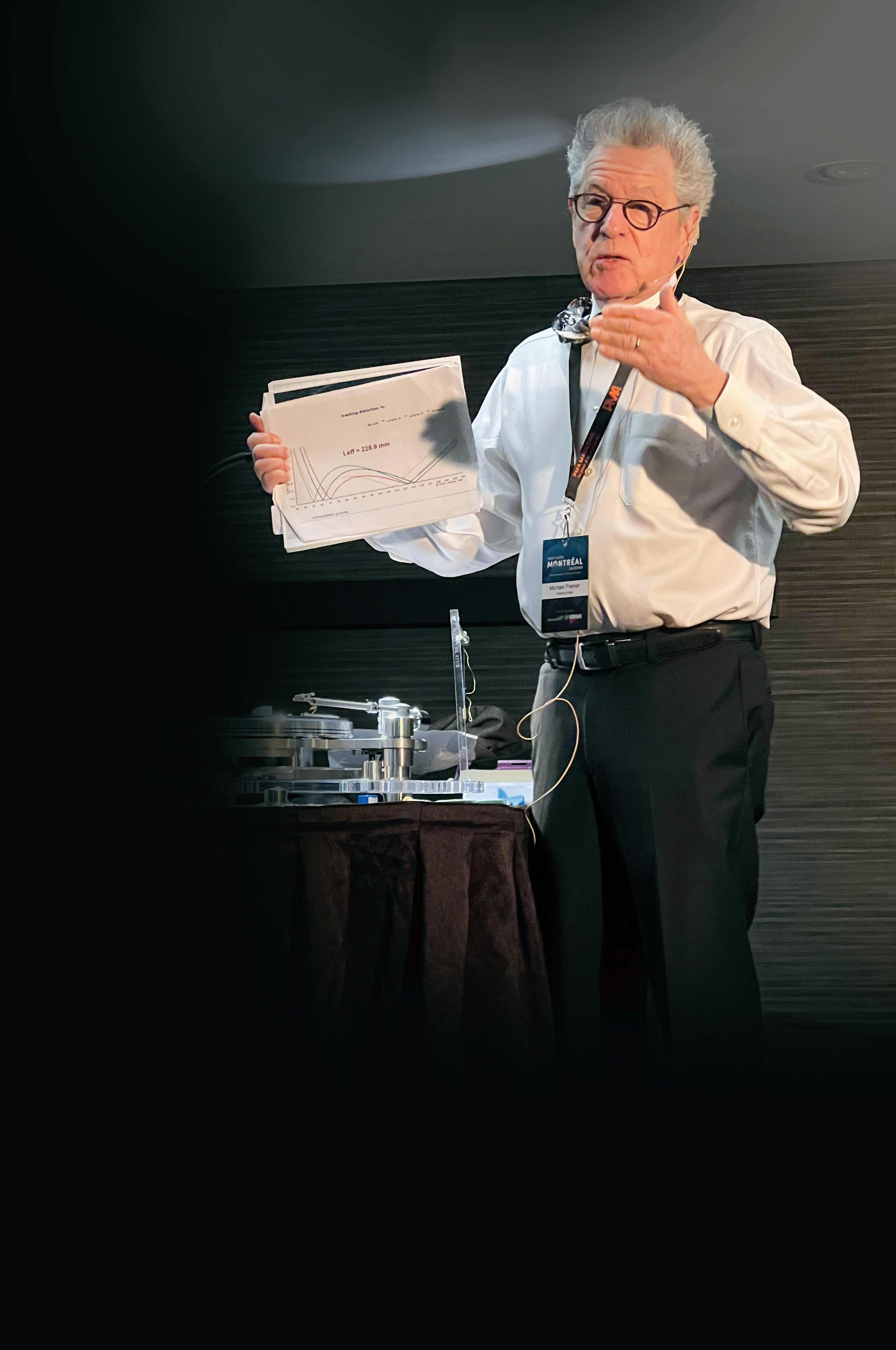 It was early Sunday morning when I met veteran audio critic Michael Fremer, aka Mikey, suitcase in hand, preparing to return home from his visit to the Montreal Audiofest. He’d been invited by the show’s organisers to present his popular turntable setup seminar along with the show’s annual Lifetime Achievement Awards, conferred on those who’ve made significant contributions to the audio industry. What Mikey didn’t expect was that he himself would be bestowed the award in recognition of his decades-long contributions to audio reviewing and his unwavering championing of vinyl playback.