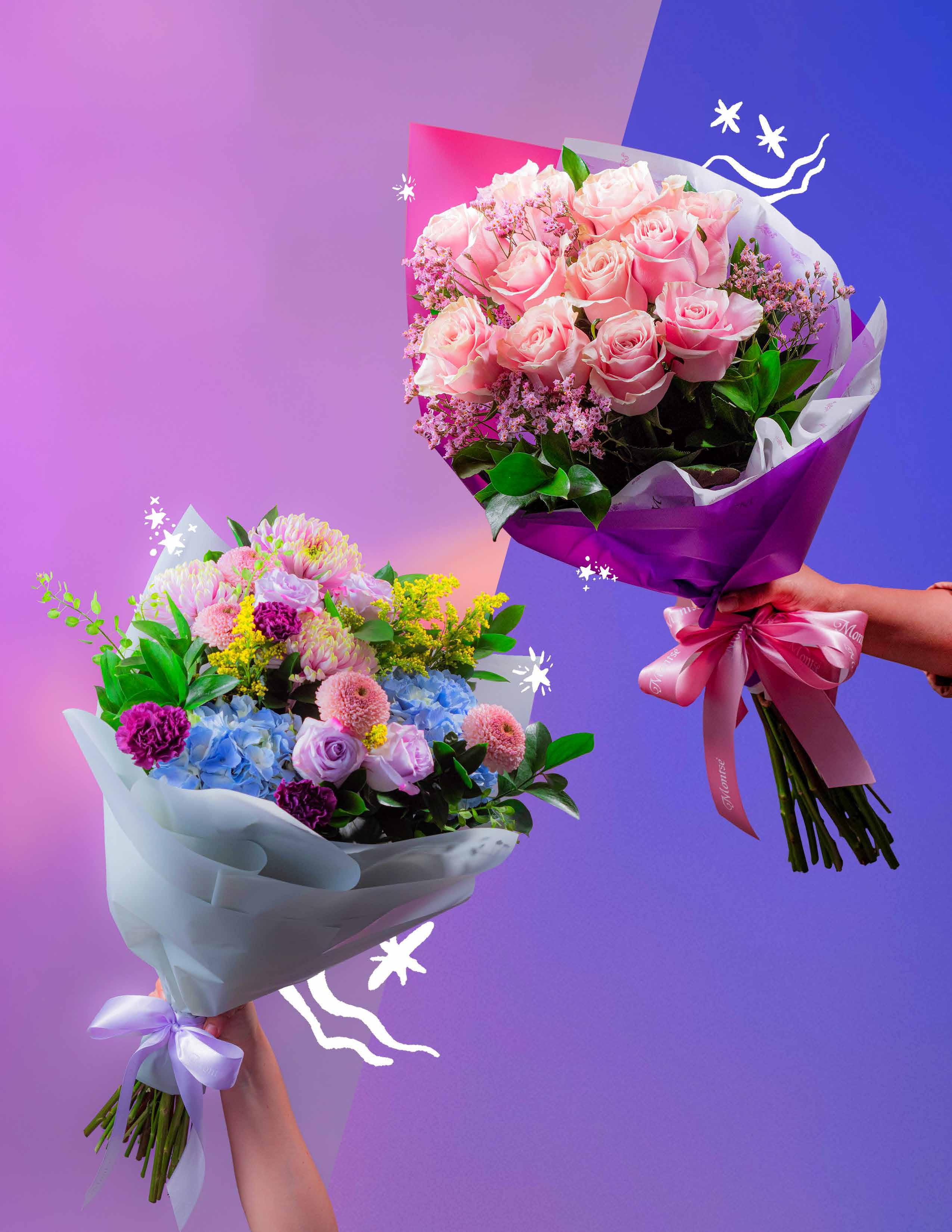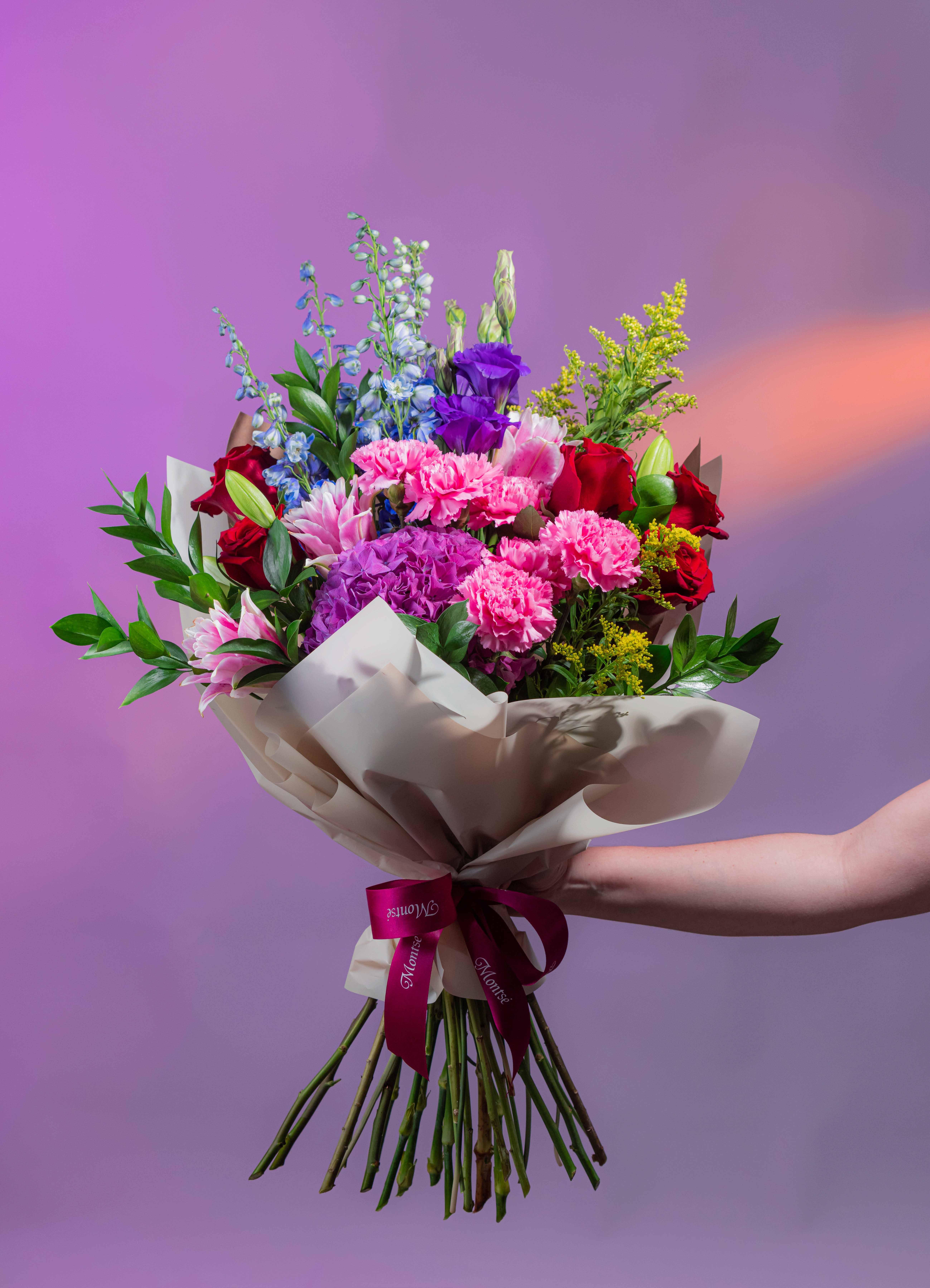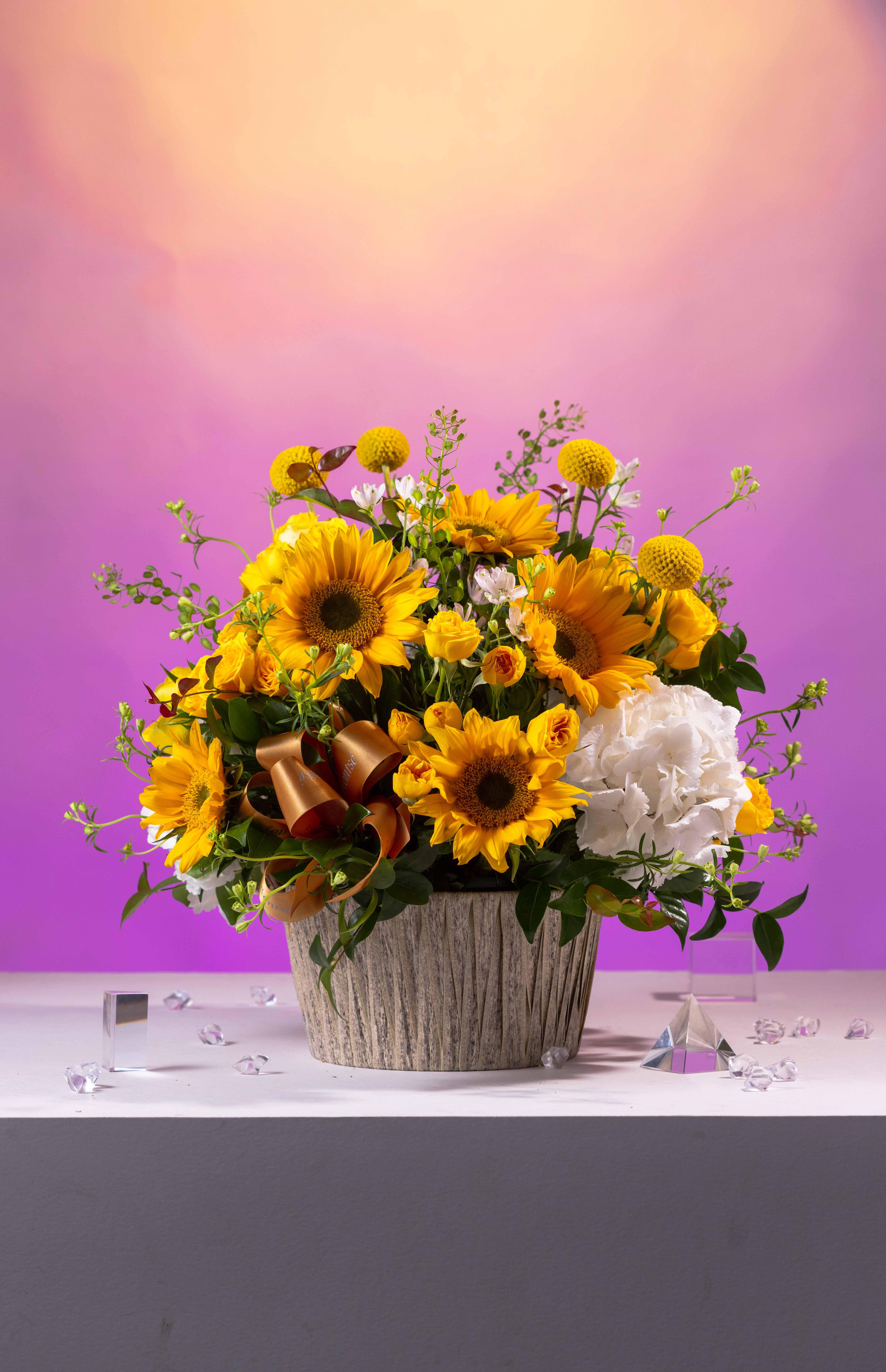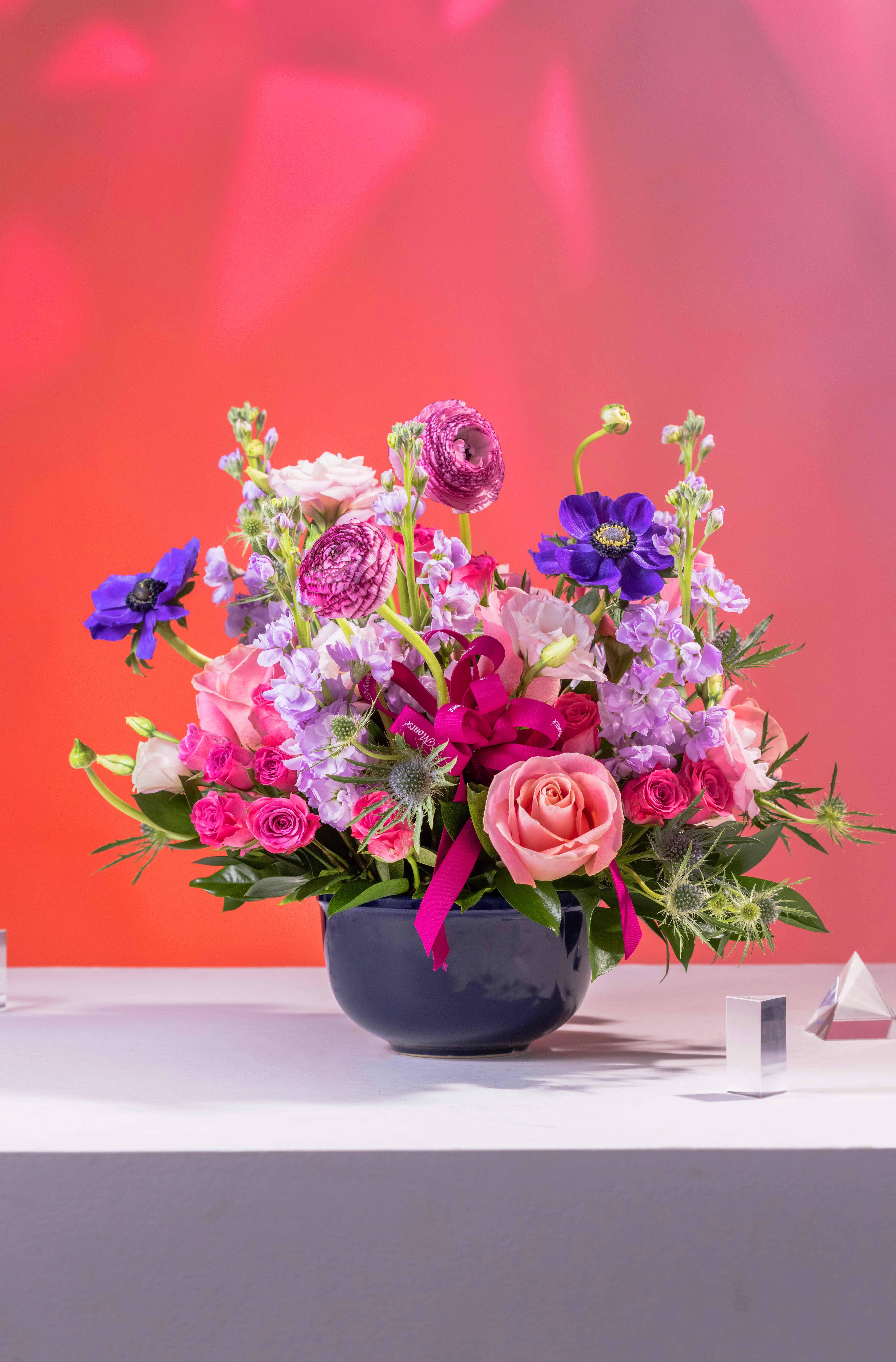 Arreglo de Anémonas y Ranúnculos sobre base de cerámica.