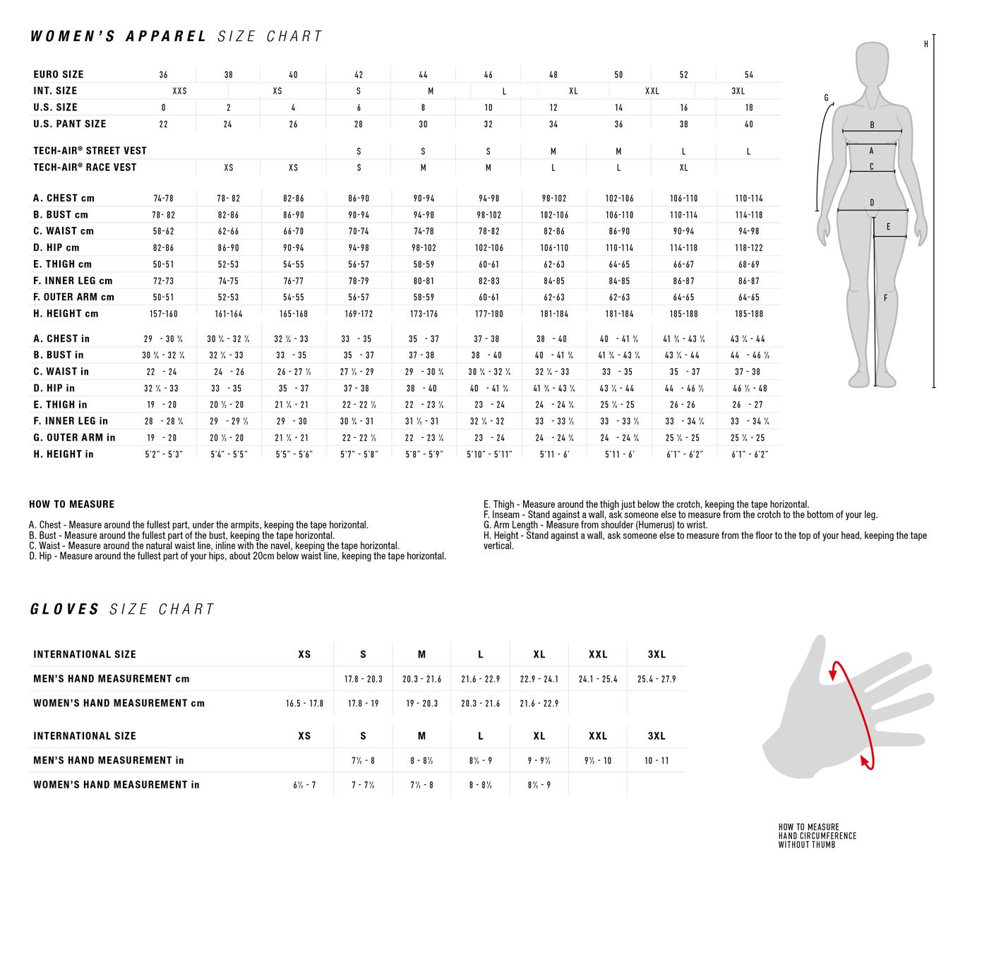 (1) The Tech-Air® 5 wearable vest is designed to be worn under any proper fitting textile jacket, keeping in mind that the jacket must be large enough to accommodate the expansion of the airbag in the event of a crash. For textile jackets this requires an additional 4 cm of space around the circumference of the body. For those riders who want to wear a sports leather jacket, Tech-Air® 5 may also be worn with Tech-Air® compatible leather jackets which have built in leather expansion panels to accommodate the inflation of the airbag. Riders who wish to wear a leather jacket that is not Tech-Air® compatible must be sure that the leather jacket has an additional 4 cm of space around the circumference of the entire chest.