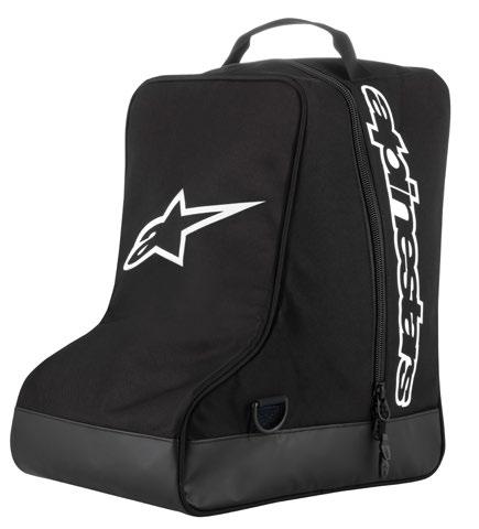 Large #10 YKK Coil zipper with double sliders and easy-to-grip Alpinestars molded pulls. Webbing haul handle at top, sewn in with heavyduty bar tacks.