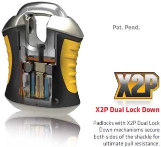 • X2P Double Bolt Locking Mechanism locks shack le on both sides.