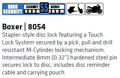 Our premium Boxer D-Shackle Lock provides extremely high levels of security, and can also be used as a Disc Lock.