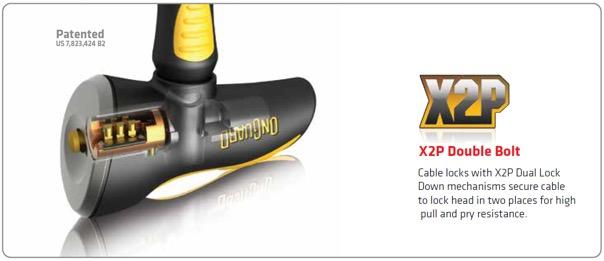 The lock features our special X2P mechanism and Z-Cylinder, and the heavy duty steel cable is permanently forged to the lock head for excellent security.