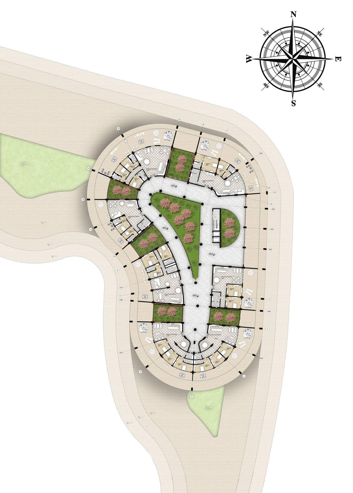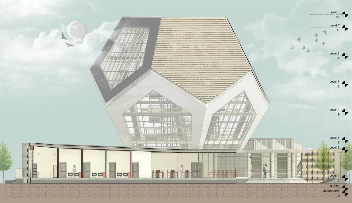 THE CONCEPT OF THE COMPLEX EMERGES FROM THE IDEA OF CONNECTIVITY AND SHARED LIVING AND THE BEST REPRESENTATION OF THAT IS THE YIN YANG CHINESE CONCEPT. THE CONCEPT HELP INSPIRE THE PLACES AND THE CONNECTION BETWEEN THE TWO MASSES AND THE IDEA OF INTEGRATING GREENERY IN THE DESIGN AS AN ELEMENT OF COURTYARDS AND ROOF GARDENS IS USED ON EVERY LEVEL FOR BETTER VENTILATION AND SOLAR USE. THIS AMBITIOUS DESIGN IS LOCATED IN NICOSIA CITY CENTRE IN A VERY VIBRANT AREA THIS ADDITION TO THE CITY WILL CREATE A NEW DESTINATION FOR FAMILIES AND YOUNG PEOPLE.