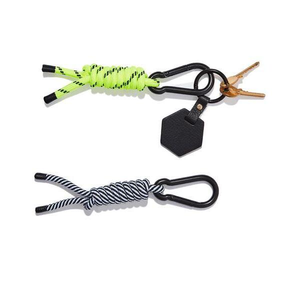 as cordas e mosquetões coloridos que se tornaram códigos identifcáveis do estilista, segundo ele: “era o que havia disponível. comprava na loja de construção vizinha à minha casa”.