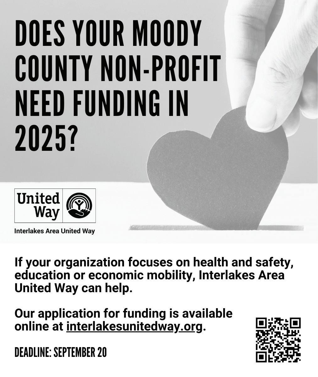 Ladies, you are invited to Our Savior’s Lutheran Church, 505 S. Wind St., Flandreau, on Thursday, Sept. 12 at 12:00 noon for our Salad Luncheon. Guest speaker is Kassy Olson, who will speak on her son’s genetic disease ALD (Adrenoleukodystrophy) a deadly condition that damages the membrane that covers nerve cells in the brain and spinal cord. There will also be entertainment. Please join us.