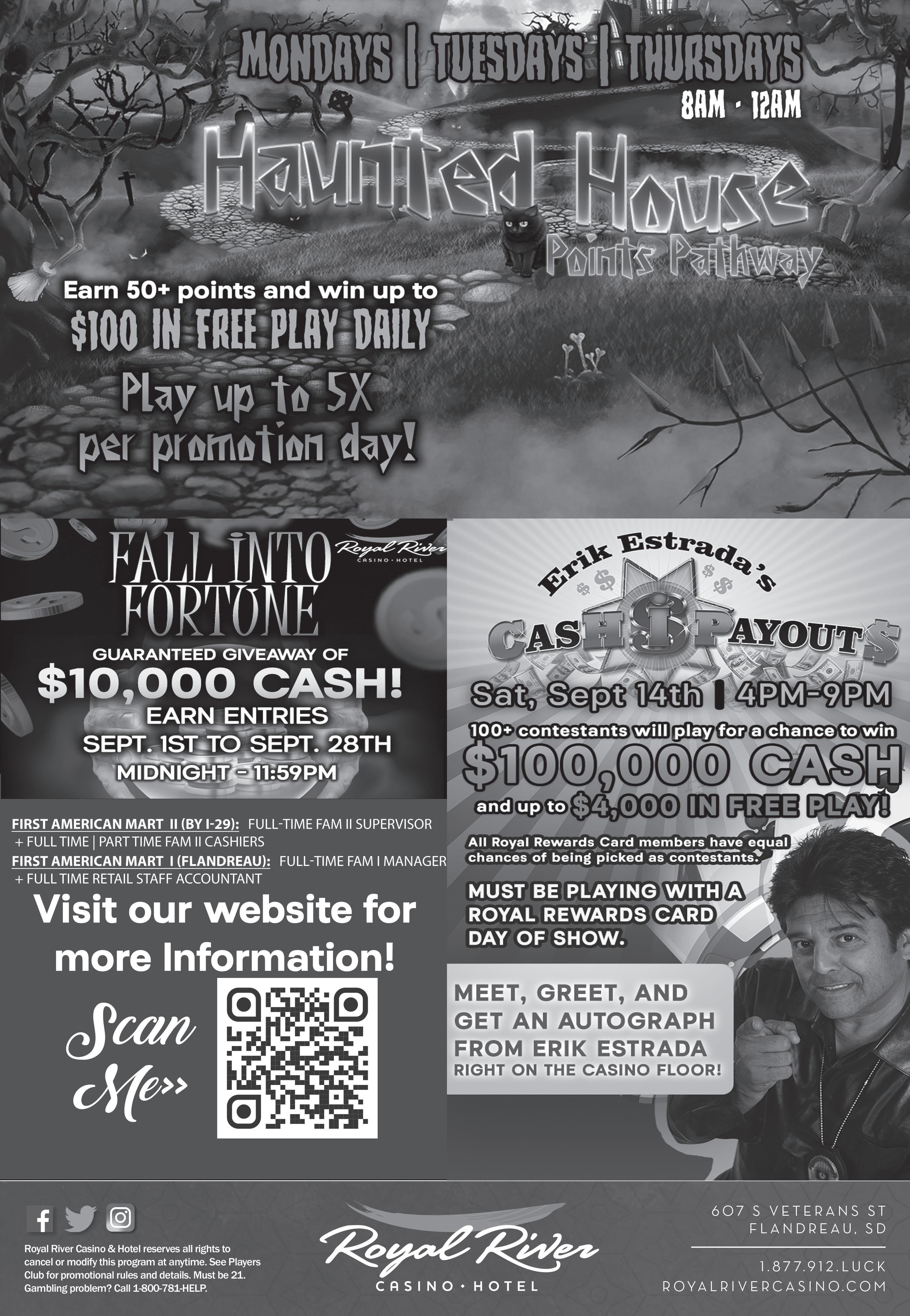 The Breadbasket accepts canned-good, & monetary donations on Thursdays from 1 to 5, & Fridays from 9 to noon (excluding the 5th week of the month). We are a community-supported, 501(c)3 organization. Every donation helps us feed our clients! Leave a message if you have any questions: 605-5730935. P.O. Box 55--202 E. 2nd Ave. Flandreau, SD 57028. USED OIL WANTED!!!! Call Scott at 605-9973291. tf119 WE BUY ESTATES!!!! Kollected Objects. 605-906-2183. tf81