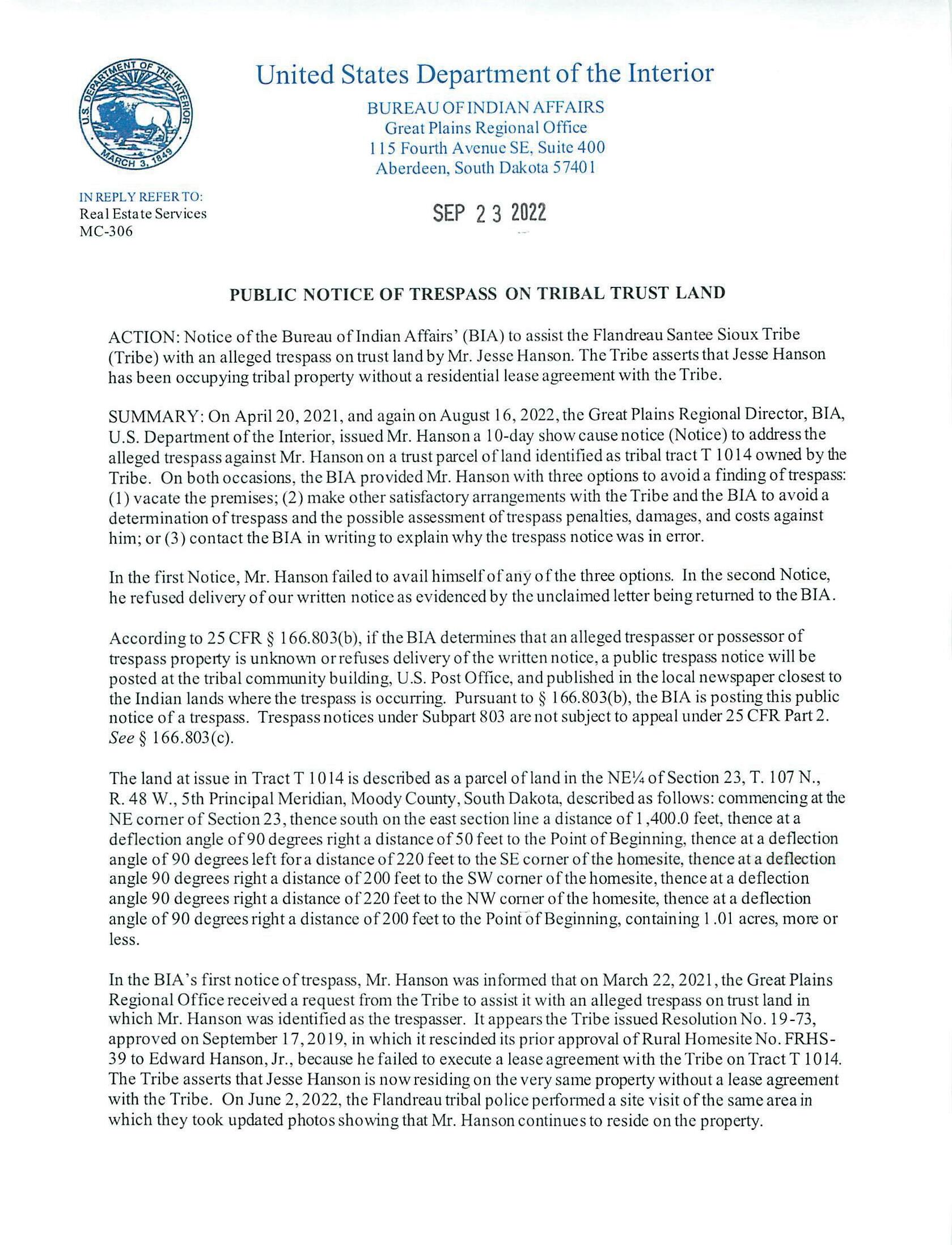 PRESORTED STANDARD U.S. POSTAGE PAID FLANDREAU, SD PERMIT NO. 50 FAX 605-997-2352 • VOLUME 68 NUMBER 41 • WEDNESDAY, OCTOBER 12, 2022