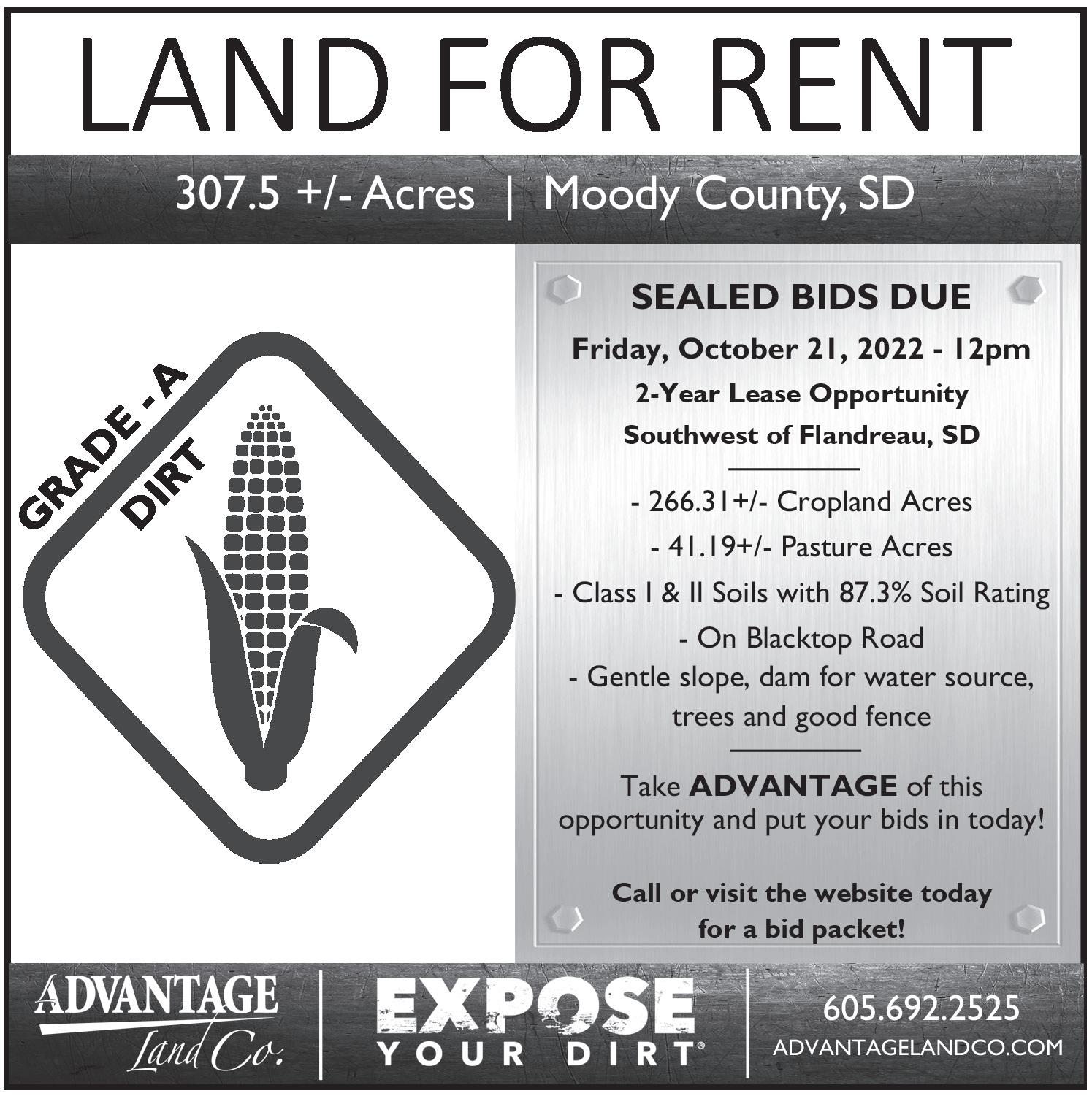 LOTS FOR RENT IN FLANDREAU SD. $225 per month. Call Kale at 605-690-4797. tf713
