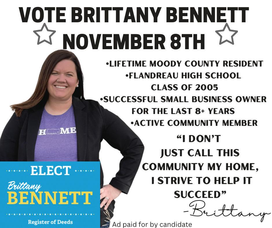 Booster “We’ve Got You Covered ~ Since 1955” • Wednesday, October 12, 2022 PAGE 5 • 10+ years self employed as contract accountant for small businesses • Raised on a farm in SW Minnesota • Worked 5 years with a Certified Public Accounting Firm • 30+ years as an accountant/controller for manufacturing companies • Fiscal, Social & Constitutional Conservative • Christian • Pro-life • Pro 2nd Amendment • I would be proud to serve the residents of Moody County and would appreciate your vote FOR MOODY COUNTY COMMISSIONER DISTRICT 3 Ad Paid for by self Phone (605) 413-7998 DaveForMoodyCounty@proton.me 47975 239th St • Trent, SD 57065 Lead Custodian OPEN: October 3, 2022 CLOSES: October 18, 2022 SUMMARY: The