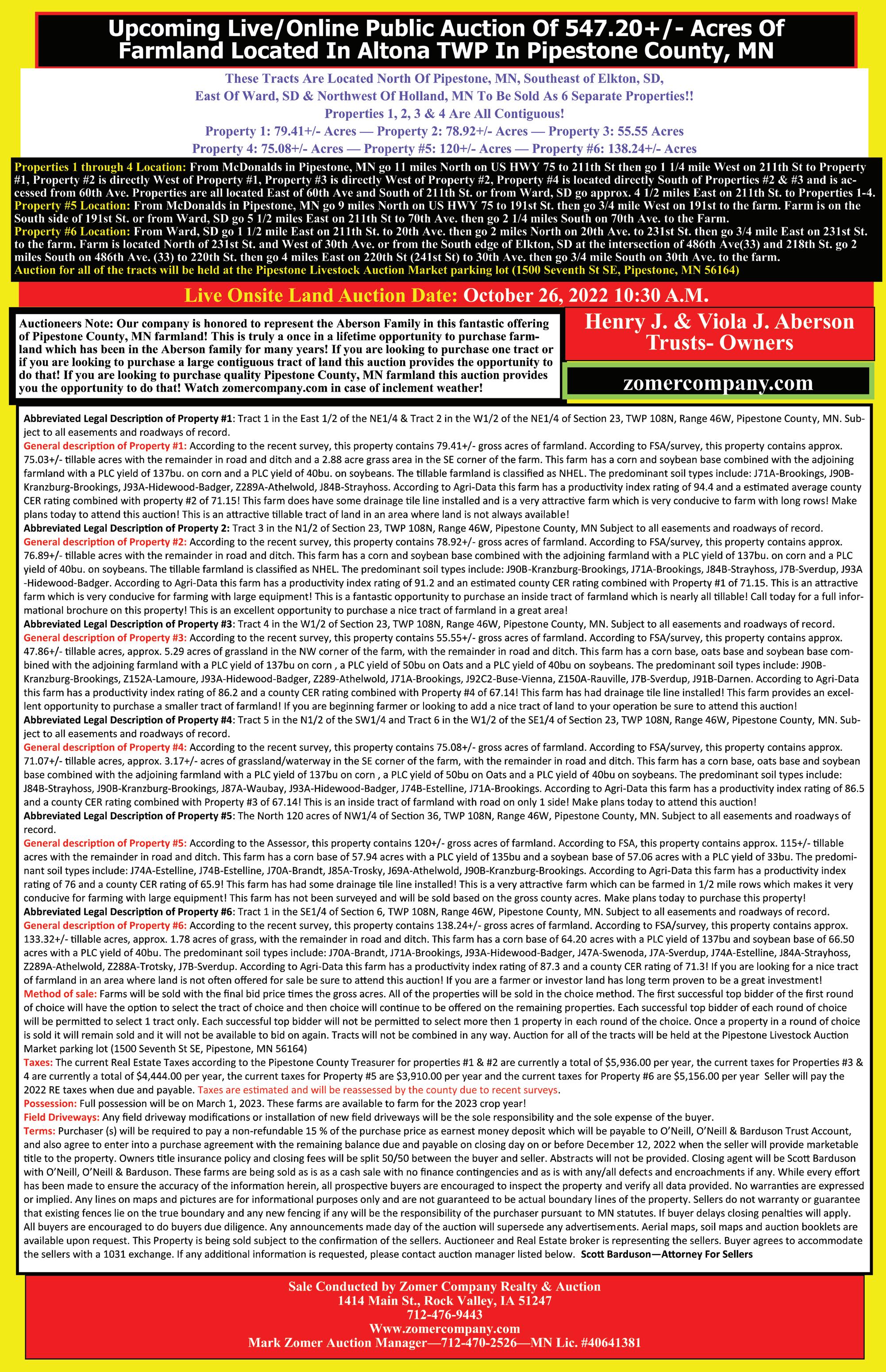 CHUCK SUTTON – Auctioneer & Land Broker, Flandreau, SD ph. 605-997-3777 & Sioux Falls, SD ph. 605-336-6315