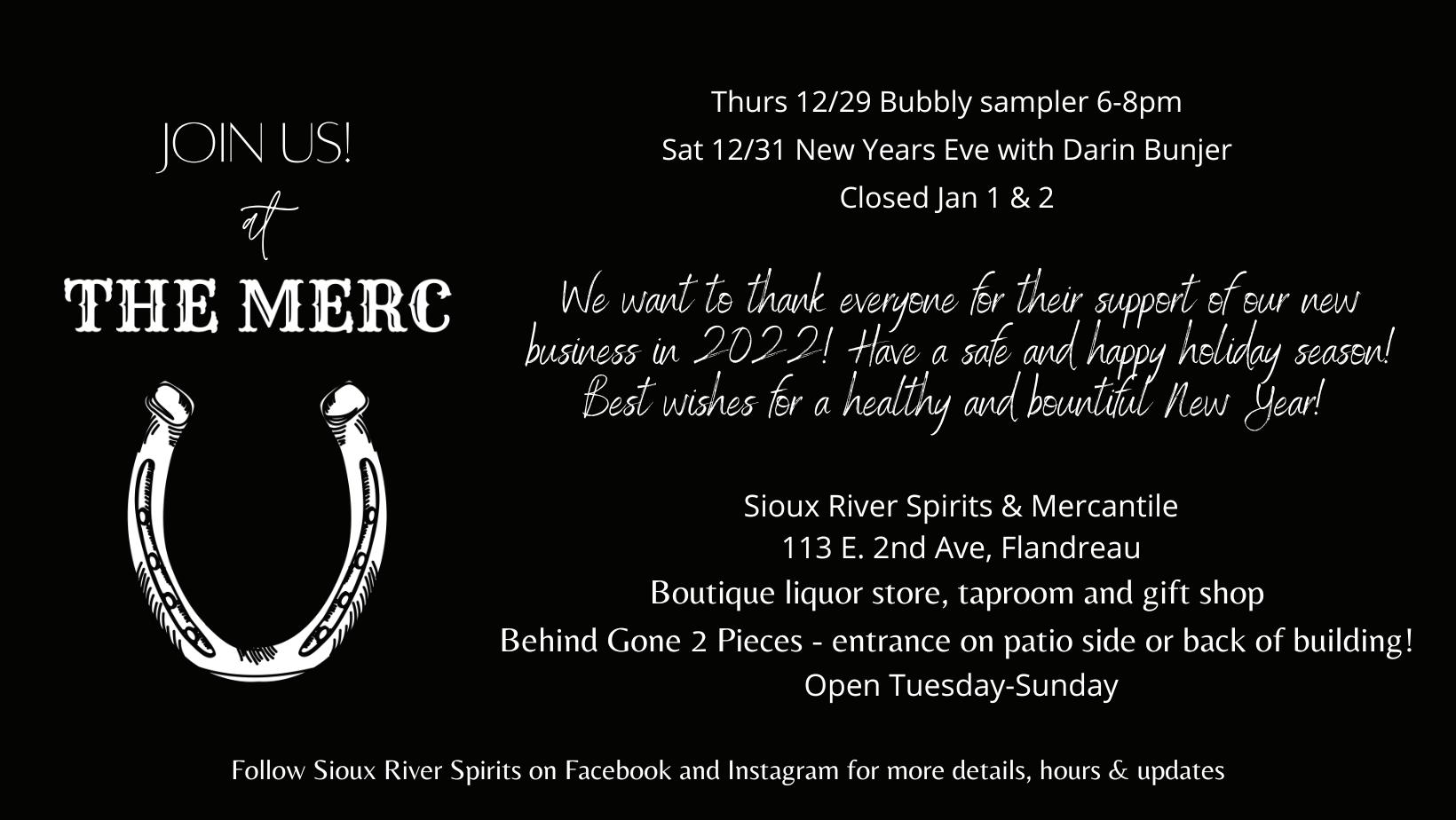 Holiday Hours: Thurs, Dec. 22nd Noon - 8 pm; Fri, Dec 23rd Closed; Sat, Dec 24th Closed; Mon, Dec 26th Closed;Tues, Dec 27th Noon - 8 pm; Wed, Dec 28th 10 am - 5 pm; Thurs, Dec 29th Noon - 8 pm; Fri, Dec 30th 10 am - 5 pm; Sat, Dec 31st 9 am2 pm; Mon, Jan 2nd Closed; Tues, Jan 3rd Noon - 8 pm.