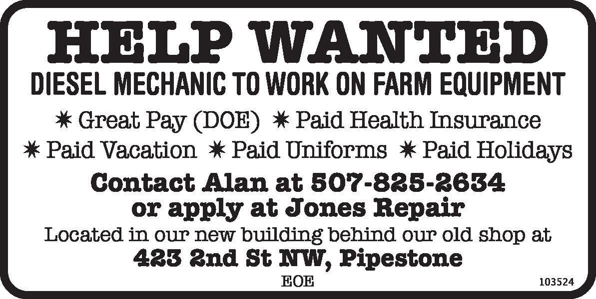 Welders wanted!!! The Hay Manager located in Trent is hiring full-time and part-time positions. Contact Andy for more information: 605-6330038. 4t1214