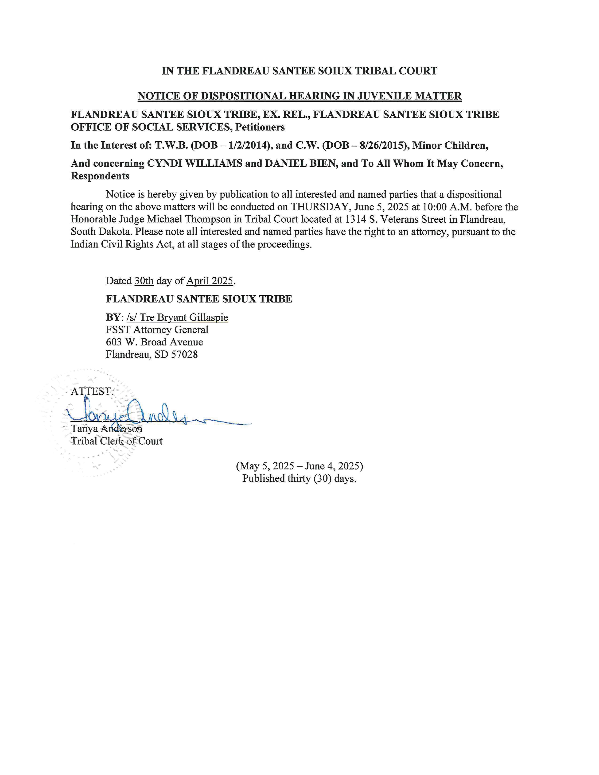 PO Box 283, Flandreau, SD 57028 www.fsst-nsn.gov