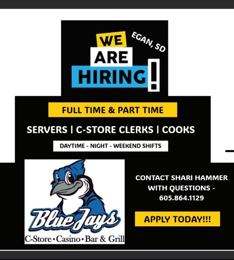 Big Sioux Community Water is hiring for a summer help position. Duties include but not limited to mowing sites system wide, buildings and ground maintenance, assist field operators. Must be 18 years of age and have a valid driver’s license. This is a 40 hour work week but has some flexibility. Apply at: Big SiouxCommunity Water System 23343 479th Ave. Egan 57024. Call 997-2098 for an application. 3t423