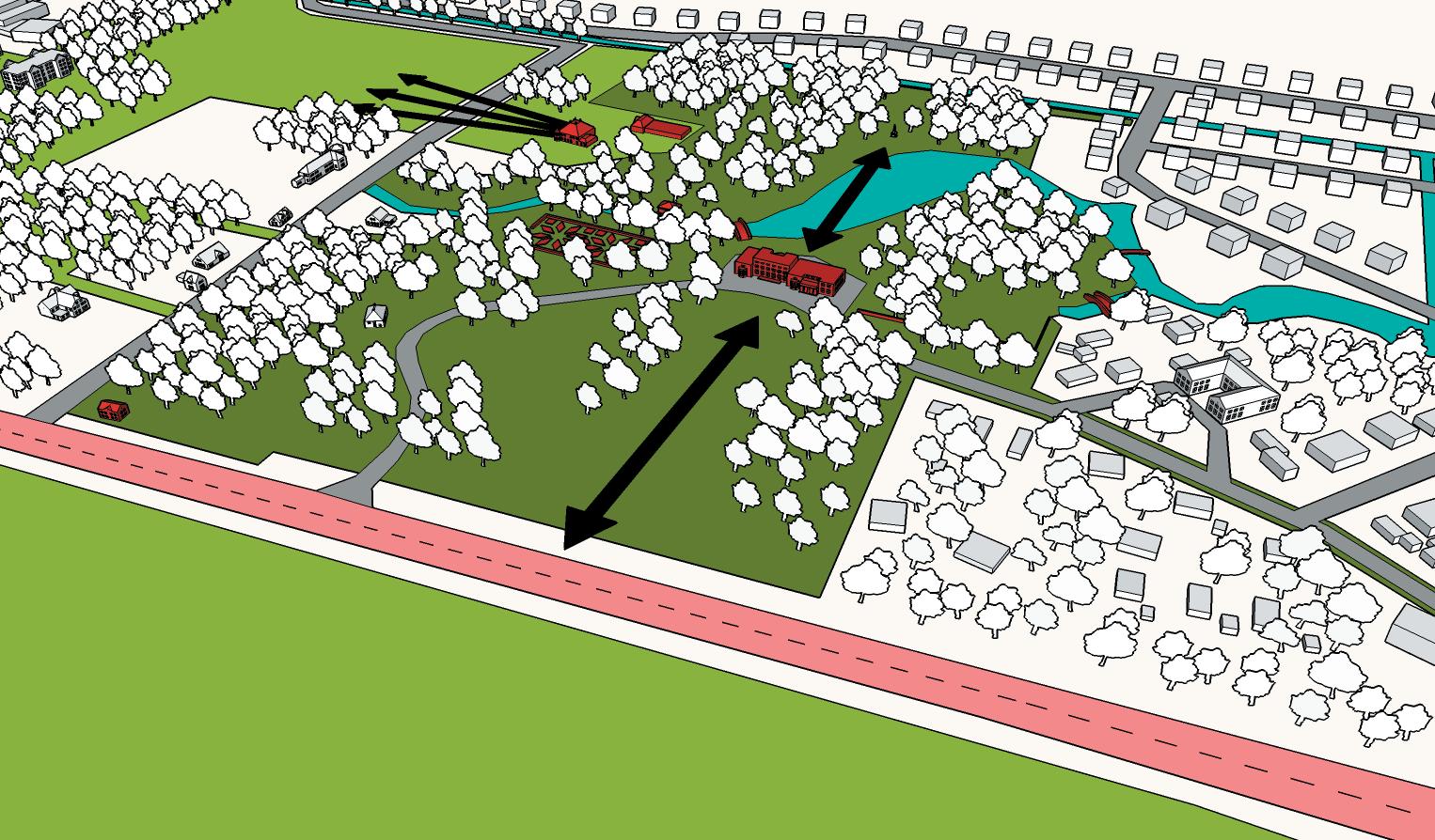Grensoverschrijdende verbindingen via route- en waterstelsel en lange zichtlijnen