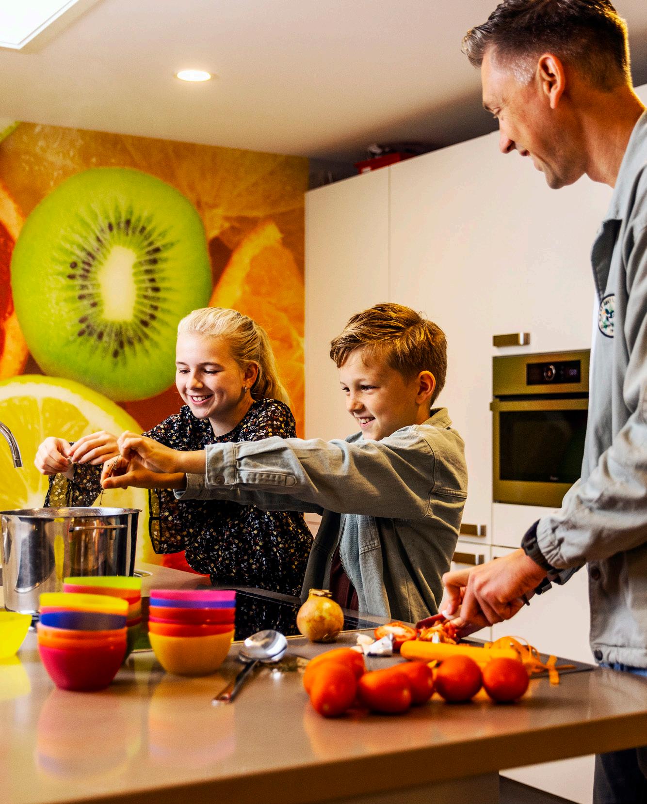 Mogen de kinderen de gerechten bedenken? “Die bepalen wij, anders krijgen we iedere keer pizza”, grapt Marcel. “Tijdens de laatste kookrondes stonden nasi, tomatensoep en groentemuffins op het menu. Oh ja en pizzahapjes, een van de favorieten!”