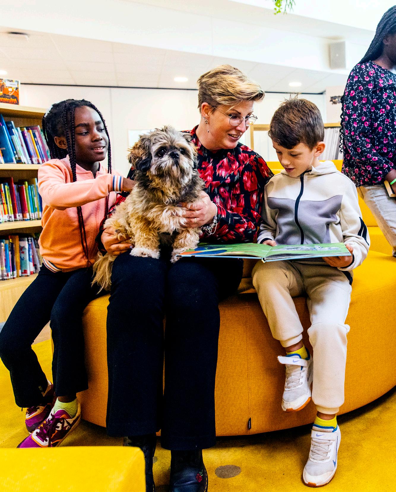 Wie vaak vrolijk tussen de boeken scharrelt, is schoolhond Kaatje. De Shih Tzu is goed voor vele knuffels, wandelingen en helpt kinderen ontspannen. “Eén keer per week mag een groep kinderen een rondje met het hondje doen. Om daarna met meer rust weer lekker te gaan lezen of werken”, zegt Samira.