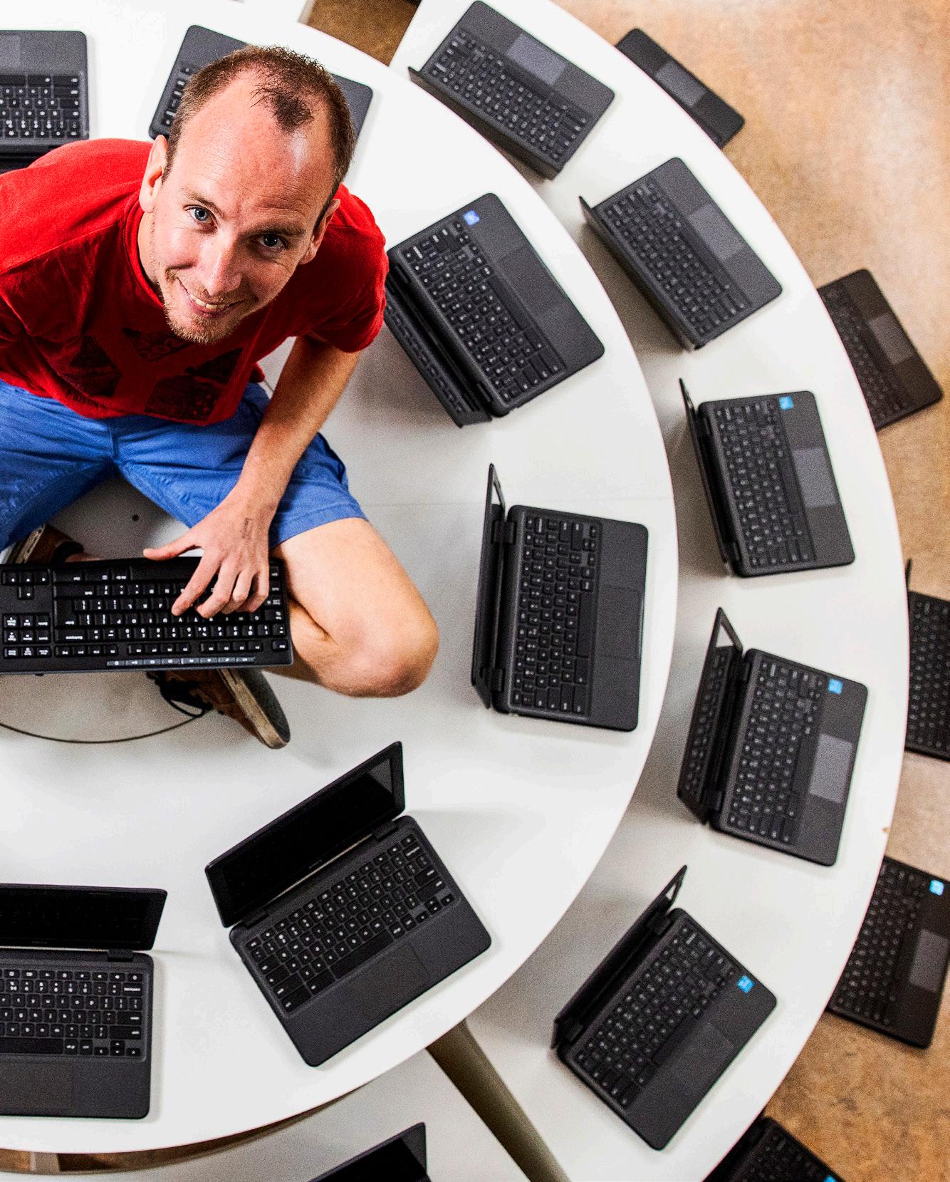 Rudy helpt collega’s bij het integreren van Chromebooks in de les, het gebruik van digitale materialen en het ontwikkelen van digitale vaardigheden om lessen te verrijken. Ook borgt hij de leerdoelen digitale geletterdheid van de overheid. Maar, het uitproberen van nieuwe snufjes is de kers op de taart. Van Bee-bots en 3D-pennen tot programmeertools. “Het allerleukste vind ik als kinderen ervaren hoe leuk het is om je te verdiepen in digitale middelen. Zoals een website bouwen als werkstuk.”