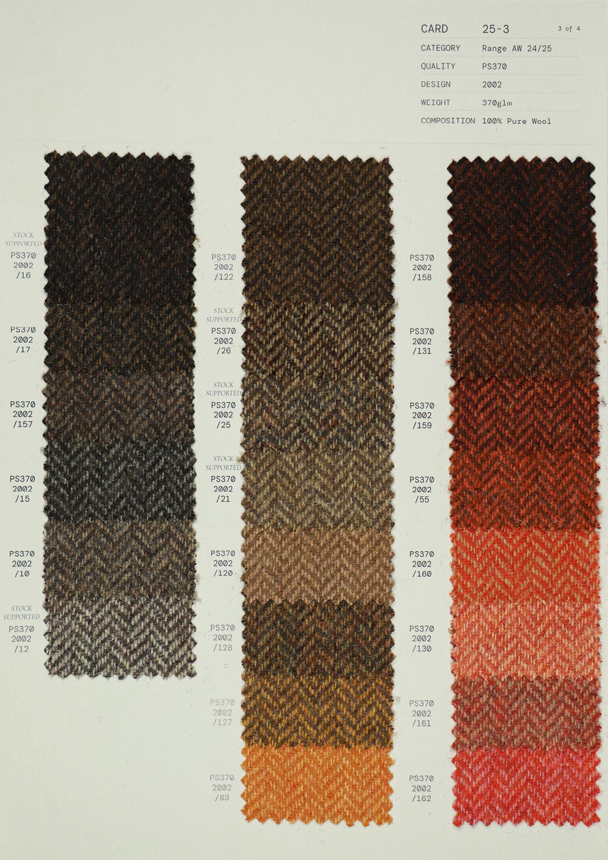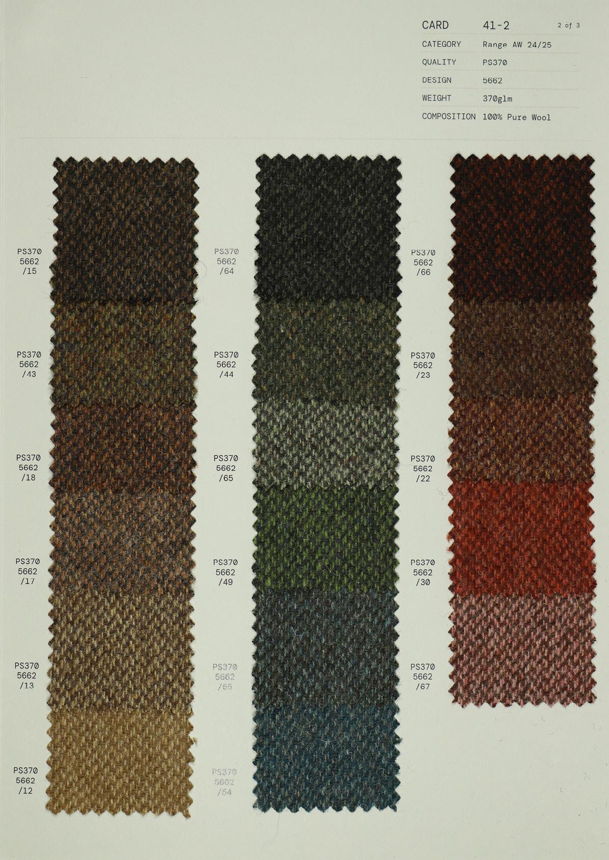 Fabrics crafted from our ethically sourced, Shetland-type wool have stood the test of time. This wool is the foundation of a durable yet supple cloth that will break in and continue to improve with wear. The fabric is rich in both colour and character due to each yarn containing up to eight individual fibre dyed shades in the blend. We can produce this versatile mid-weight fabric in either one of our classic house finishes (more finish options are available on request). PS350 & PWS350 feature a decatised (pressed) finish which enhances the design’s lustre whilst also providing a clean and compact hand feel.